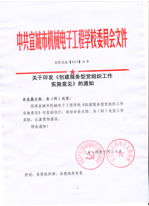 宣城市机械电子工程学校创建服务型党组织工作实施意见