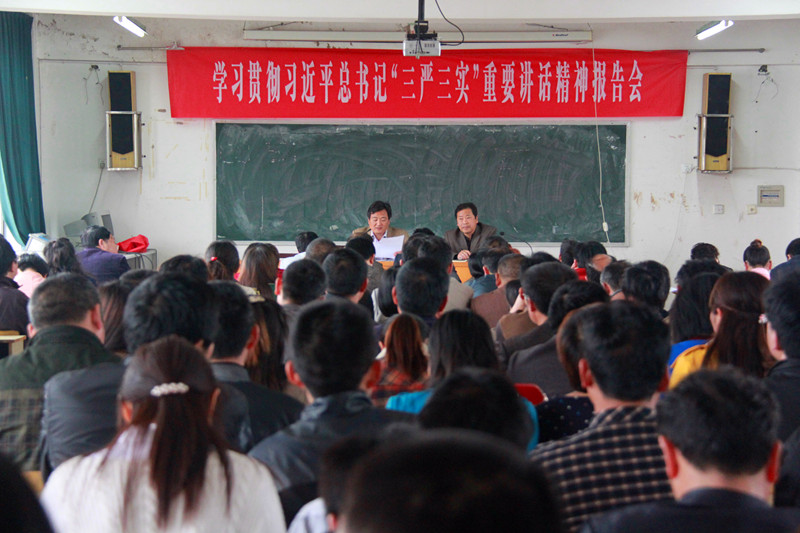 4月18日下午,学校在141教室召开全体教职工大会,举行 “三严三实”集中学习报告会,学习党委委员、副校长赵孝荣为全体教职工做了学习习近平总书记“三严三实”要求的专题报告。