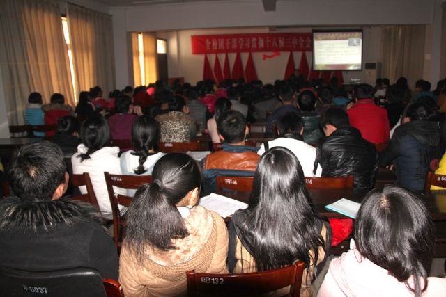为进一步加强学校团、班组织建设,全面提升团、班干部综合素质,掀起学习贯彻十八届三中全会精神的热潮,12月4日,宣城市机械电子工程学校在党校活动室召开全校班、团干部学习贯彻十八届三中全会精神报告会。全校三十多个班级的团支部书记、班长和业余党校学员共90余人参加了报告会。