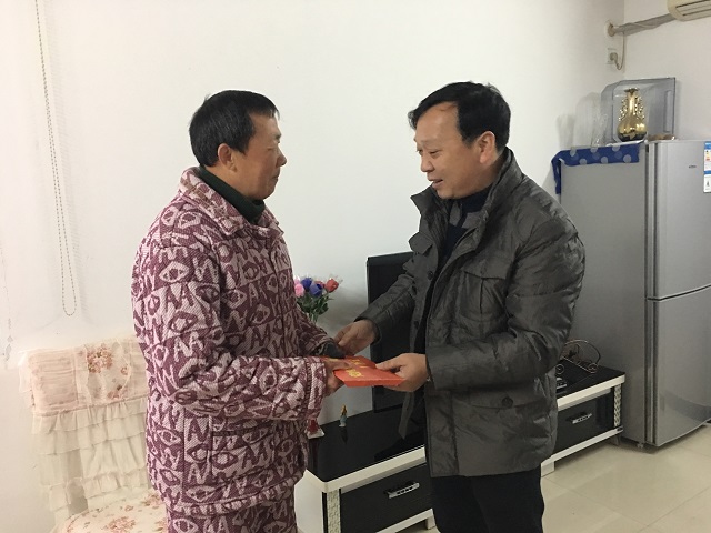 1月5日上午,市机电学校党委委员、副校长陈传胜,组织部熊科长在学校党委办相关人员陪同下,走访慰问因病困难退休党员苏建民老师,为他送去党的关怀问候和新年的祝福。