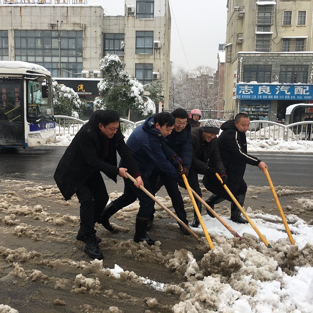 近日,我县持续雨雪冰冻天气,给广大市民的出行和生活带来极大不便。危机时刻,共产党员冲在前面。1月28日上午,机电学校党委组织党员教师和群众来到太极大道天寿路口-农批市场路段开展铲雪活动。