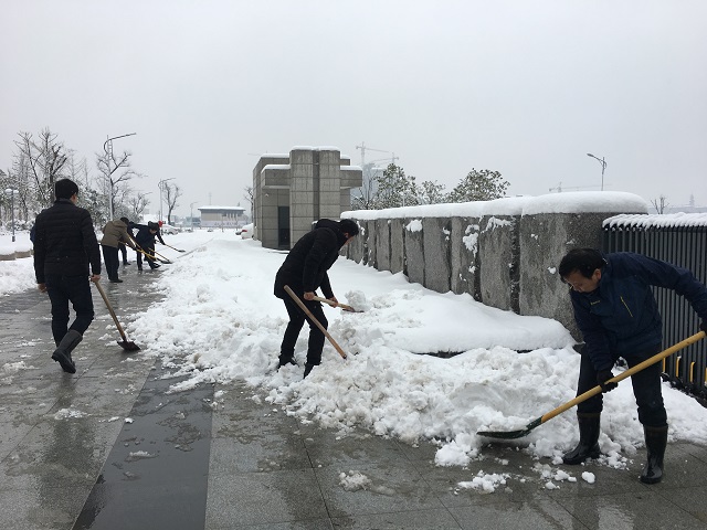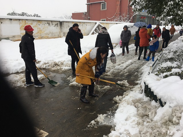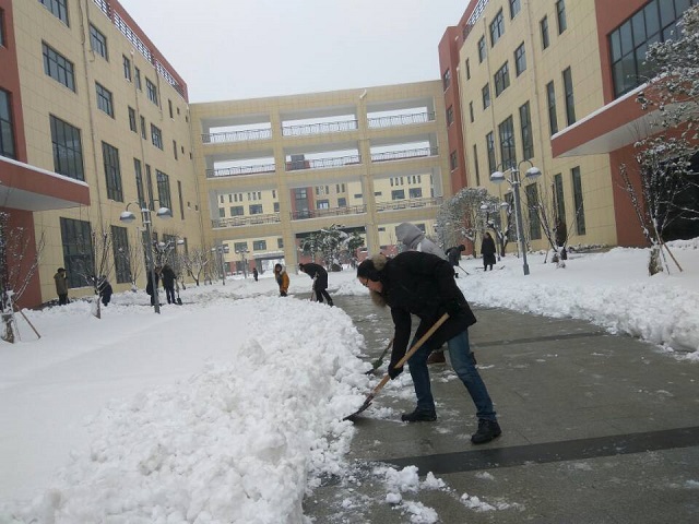 随后,党员教师们冒着严寒,又来到学校,将校园内外的积雪一并铲除干净,方便了广大教职工的出行。