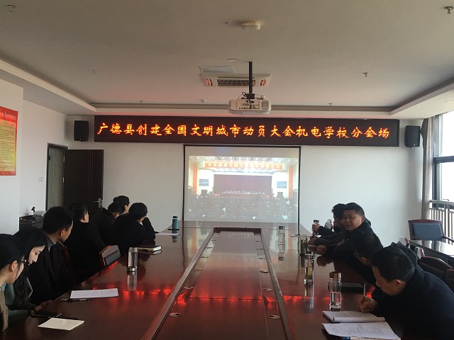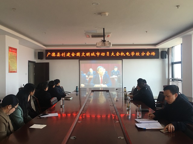 3月1日上午,全县创建全国文明城市动员大会在县会议中心举行。宣城市机械电子工程学校设置了分会场,部分行政人员参加了会议。
