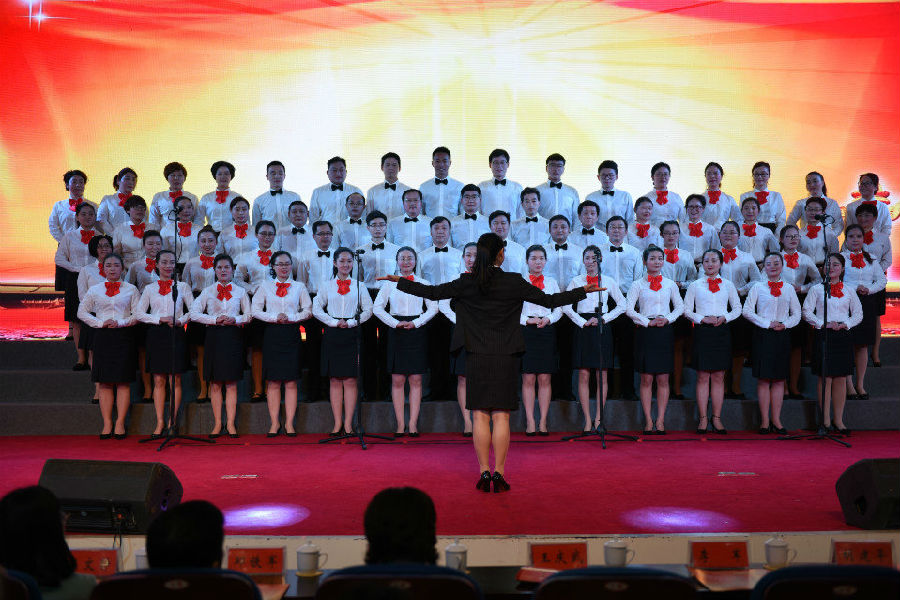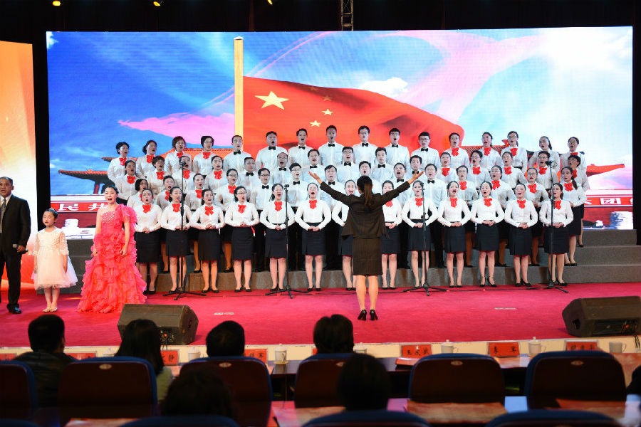 该校参演的节目是《今天是你的生日,中国》,演员们以饱满的精神状态,嘹亮的歌声赢得了观众的掌声。时而轻柔婉转、时而雄浑壮阔,为在场观众带来了一场听觉盛宴。据悉,为达到最佳演出效果,机电学校的老师们利用寒假、中午休息时间反复排练。