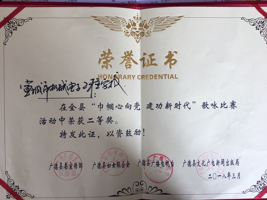 3月16日下午2:30,县委宣传部、县妇联等联合举办了“巾帼心向党 红歌唱祖国”歌咏比赛,比赛在县会议中心第一会议室举行,机电学校教师合唱队参加了此次汇演,并荣获二等奖。