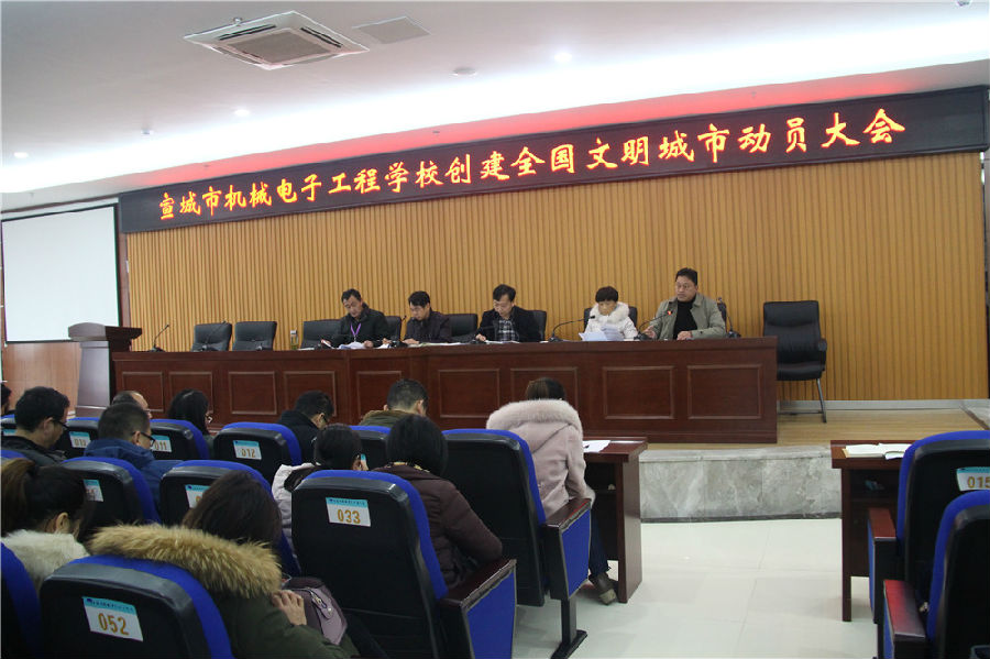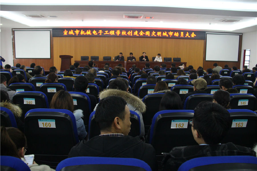 3月21日下午,宣城市机械电子工程学校在图书信息中心二楼报告厅,召开了创建全国文明城市动员大会。本次会议由学校负责人、副校长陈传胜主持。