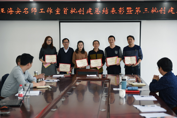 工作室主持人王海安从“健全工作机制,搭建交流平台”、“开展多种形式的学习交流活动,为成员成长奠定基础”、“注重建设成效,加强成果转化”“存在问题及后期展望”等方面用具体数据展示了三年创建的丰硕成果。