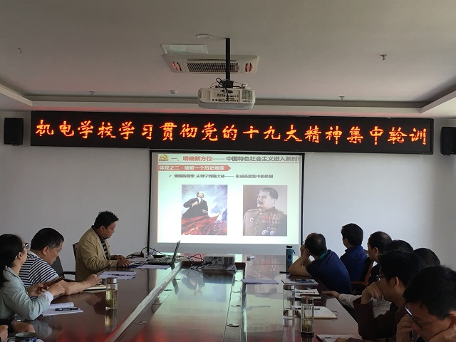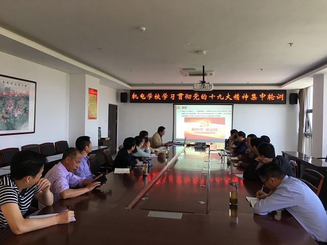 机电学校学习贯彻党的十九大精神集中轮训班于5月9日上午9点在图书信息中心五楼会议室正式开班。所有行政人员参加了此次集中轮训。