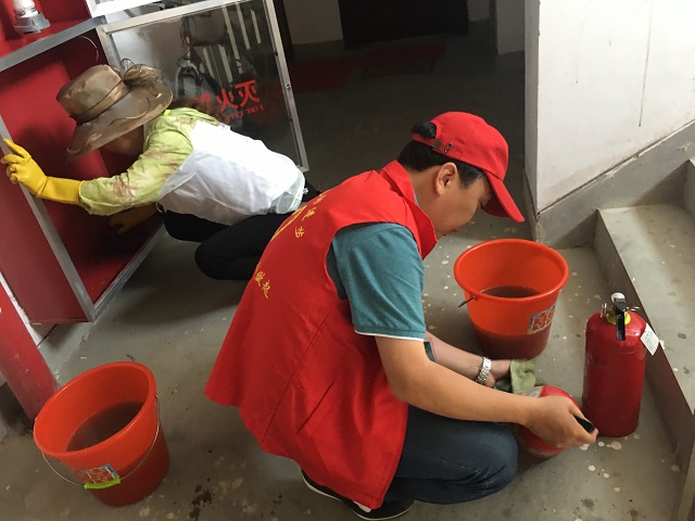 早上8点,第一党支部16名在职党员志愿者身穿“红马甲”、头戴小红帽、带上水桶毛巾来到西关小区。待小区物业管理人员分配好任务后,党员志愿者们分赴各个单元楼道,主要清洗各楼层消防栓。因各楼层消防设施常年无人清洗打扫,积灰较厚,志愿者们不怕脏不怕累,一遍遍清洗、擦拭。经过两个多小时的劳动,各楼层的消防设施焕然一新,大家圆满完成了分配的任务,赢得了清溪社区、物业管理人员和群众的一致赞叹。
