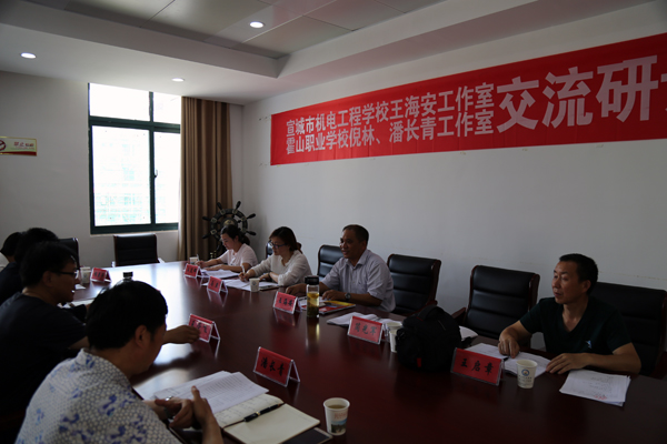 6月7日下午,广德县中职王海安名师工作室一行五人,在工作室主持人王海安带领下,前往六安市霍山职业学校开展教学研讨活动,就省级学会课题《基于区域视角“名师工作室”建设运行机制的实践性研究》展开讨论。