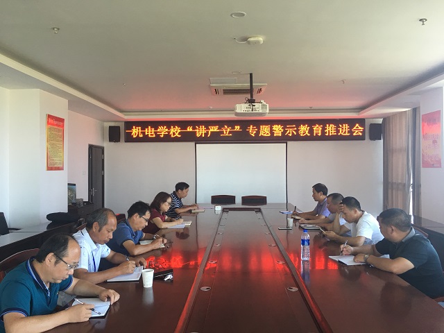 7月20日下午,机电学校党委组织召开“讲忠诚、严纪律、立政德”专题警示教育推进会。党委委员、常务副校长陈传胜主持会议并讲话,行政干部十余人参加了会议。