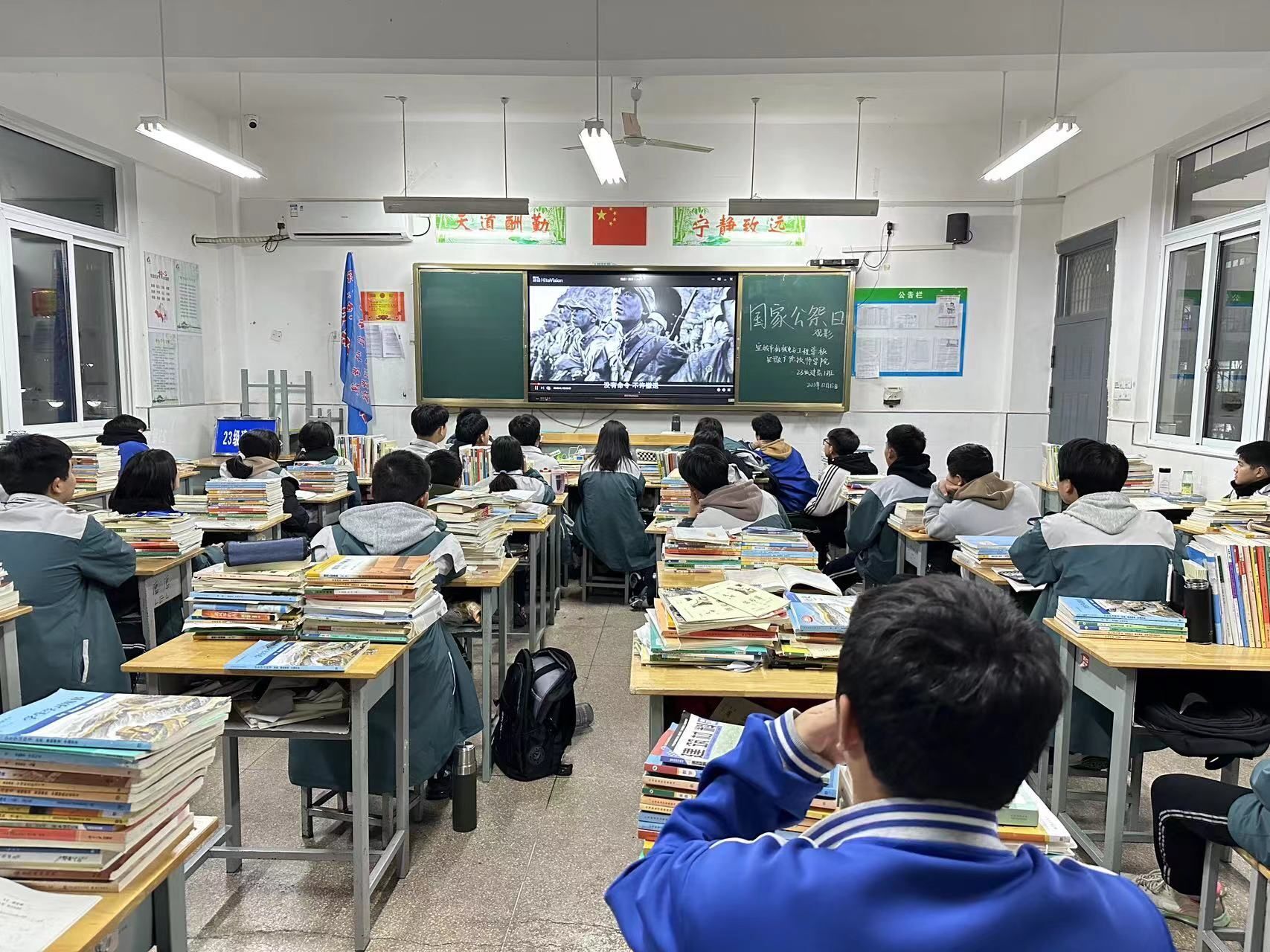 12月13日晚,学校组织2023年国家公祭日主题教育观影活动,我校学生处组织全体在校学子共同观看电影《南京!南京!》。观看完影片后,同学们的心情久久不能平复。黑白的画面让全体学生的情绪压抑得无法释放,身临其境地感受到在当时南京城中同胞们的恐惧和绝望。