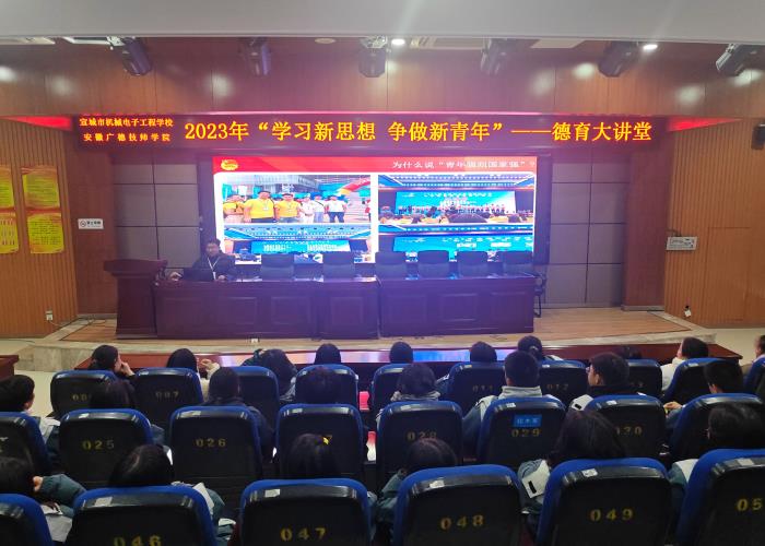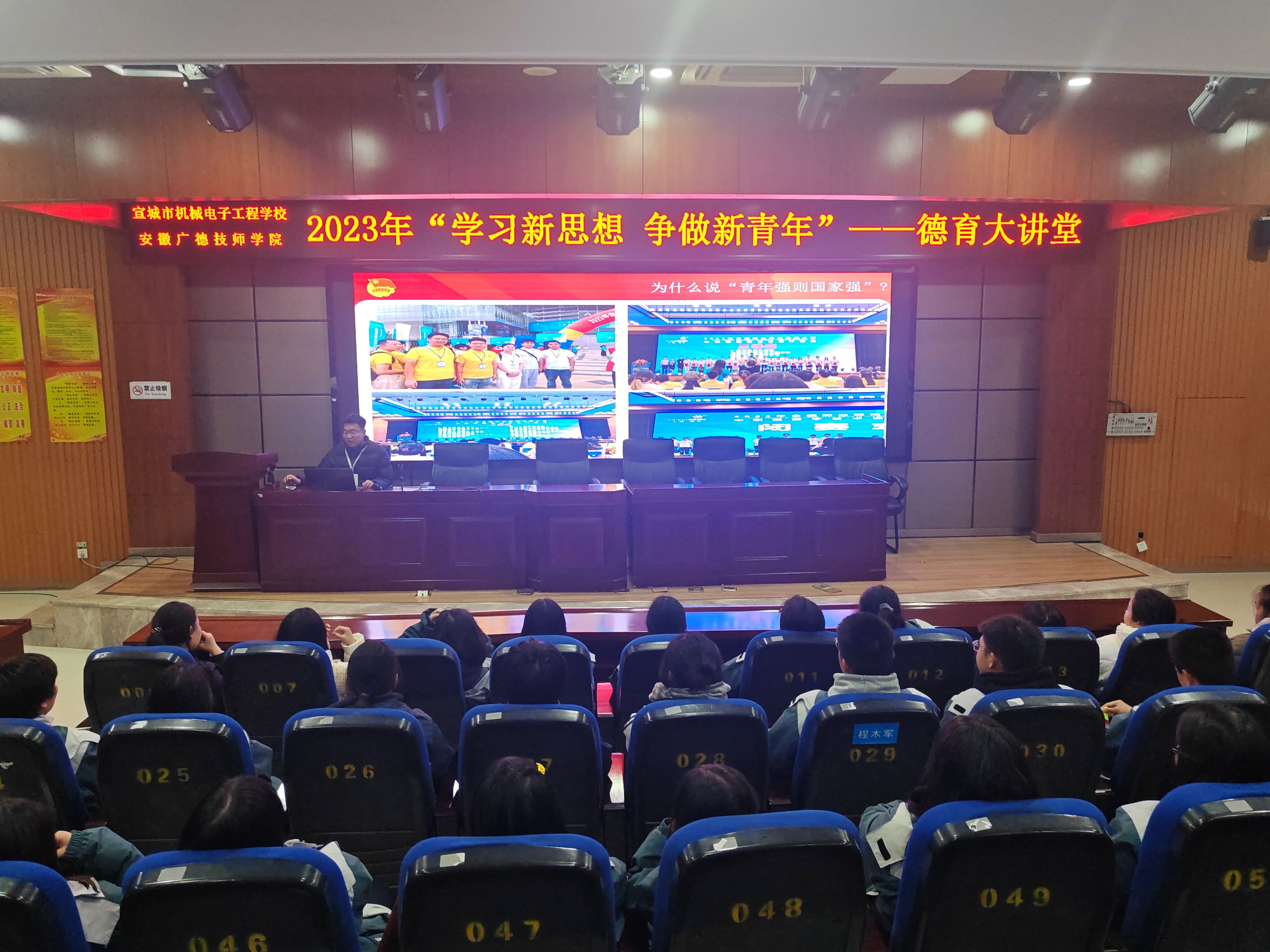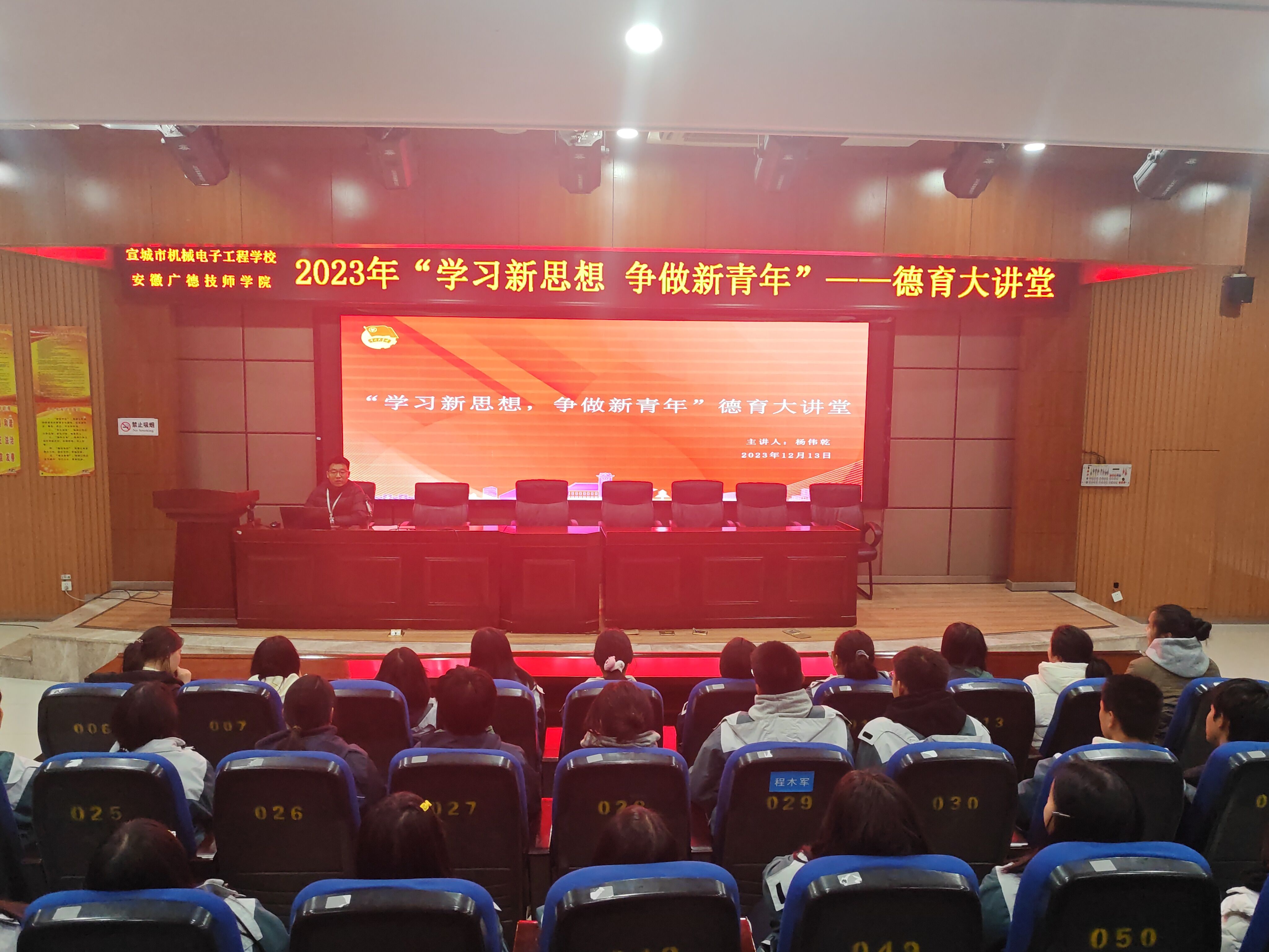 为加强青少年思想道德教育,进一步培育和践行社会主义核心价值观,12月14日,宣城市机械电子工程学校(安徽广德技师学院)开展2023年“学习新思想 争做新青年”德育大讲堂主题教育活动。活动由学校团委书记杨伟乾主讲,部分学生代表参加。