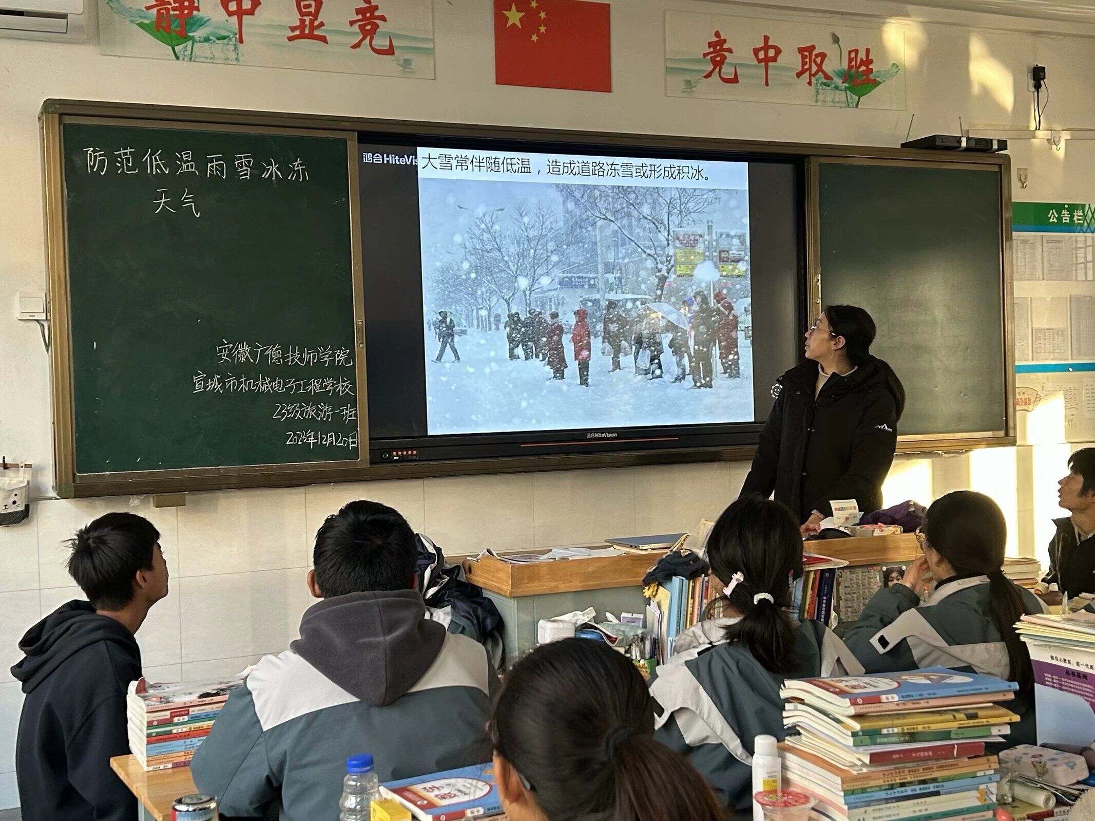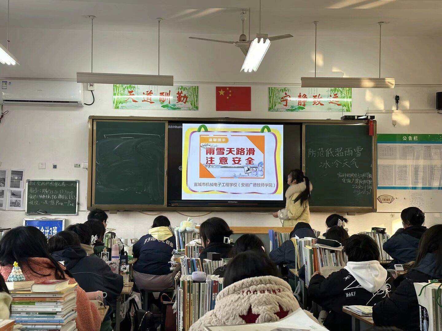 受寒潮影响,我市迎来持续雨雪低温天气。为做好应对雨雪天气及降温带来的影响,学校积极筹备各项保障工作。12月21日,宣城市机械电子工程学校(安徽广德技师学院)开展雨雪天气安全教育主题班会活动。