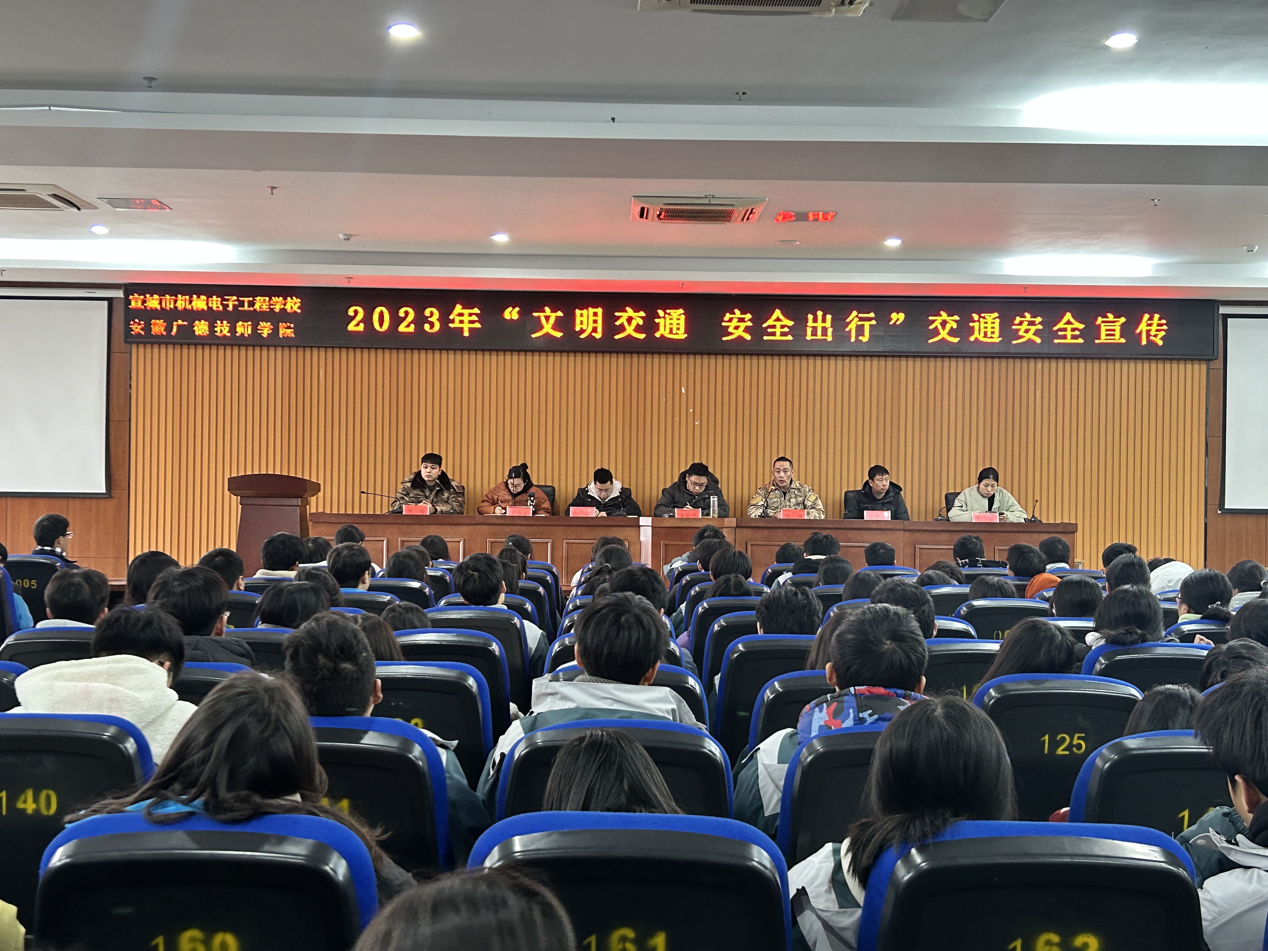 为进一步提高广大学生的交通安全意识,教育引导学生从自我做起养成文明的交通习惯,筑牢安全出行防线,12月26日,宣城市机械电子工程学校(安徽广德技师学院)开展2023年“文明交通 安全出行”交通安全宣传。校学生处主任章银照,学生处老师程明,校各学管主任以及部分学生代表参加会议,会议由章银照主持。