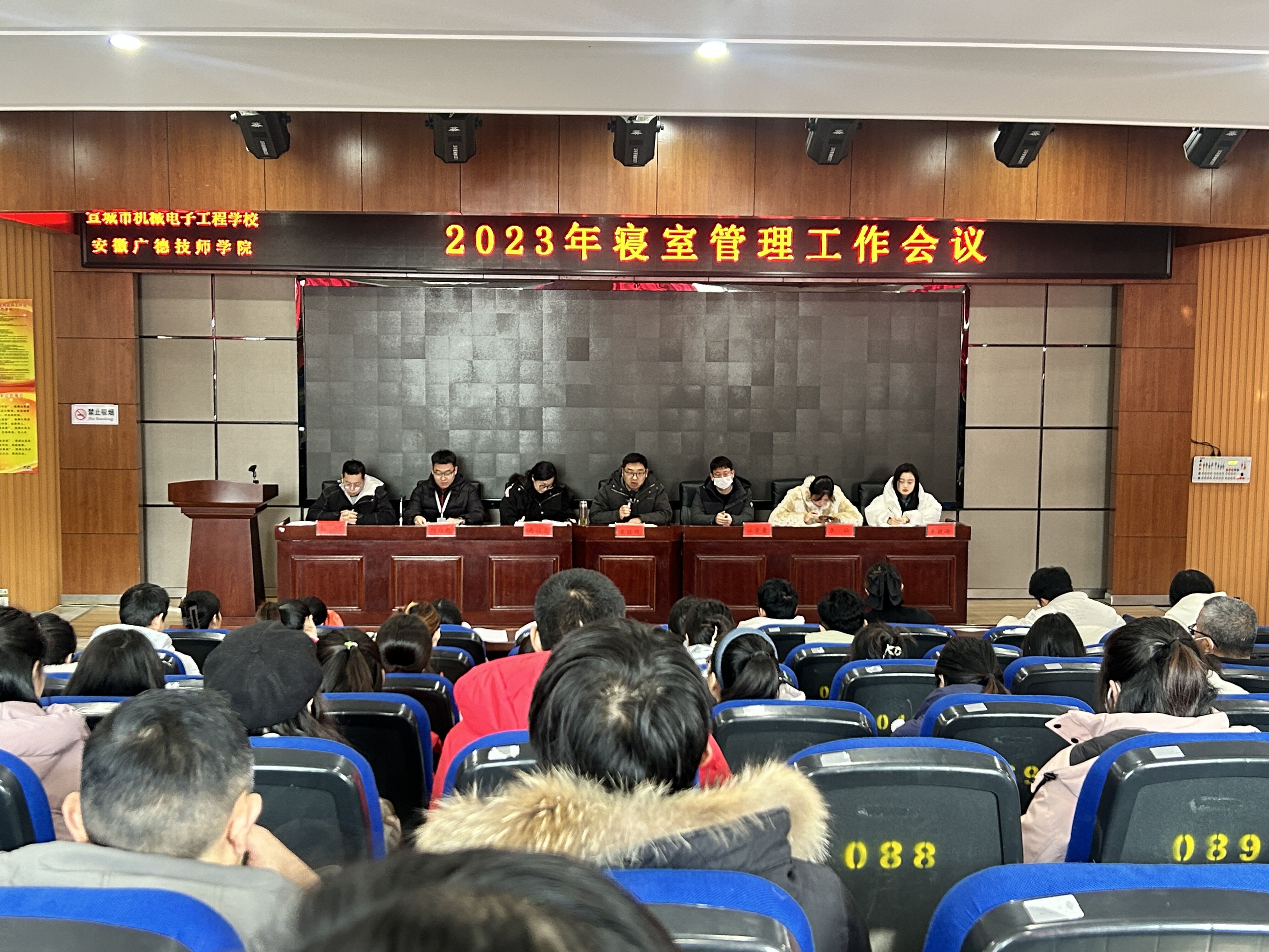 为营造“文明、整洁、健康、温馨”的宿舍环境,确保住校学生有一个良好的生活和休息环境,强化安全意识,落实学校宿舍管理工作,12月27日上午,宣城市机械电子工程学校(安徽广德技师学院)召开2023年寝室管理工作会议,学生处主任章银照,团委书记杨伟乾,各系部学管主任,学生处德育员程明,全体班主任出席会议。会议由章银照主持。