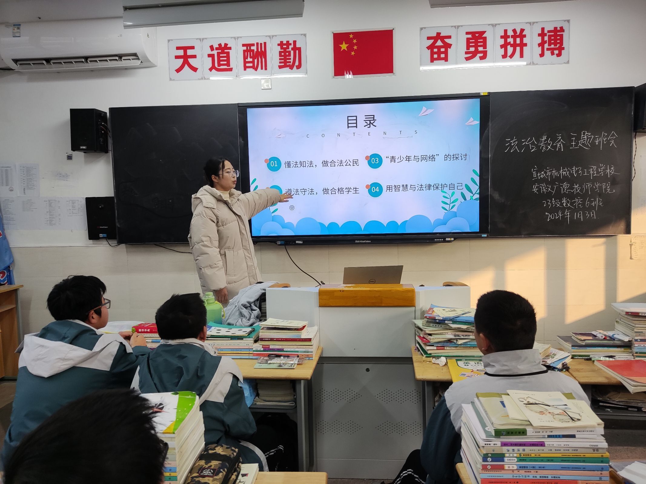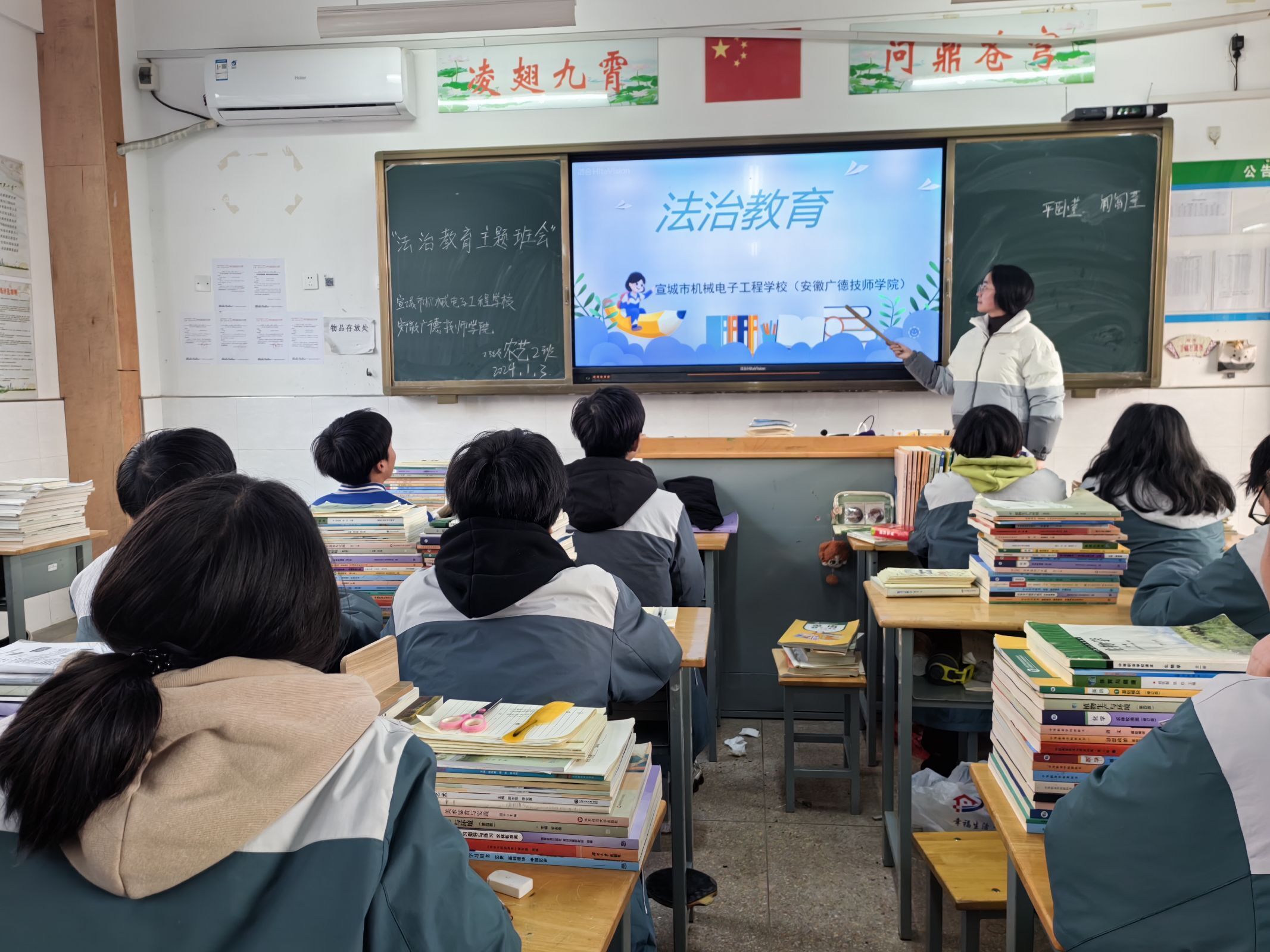 为进一步增强学生的法治观念,提升学生法治素养,引导学生学法、知法、守法,帮助学生树立正确的法治观念。1月4日,宣城市机械电子工程学校(安徽广德技师学院)开展法治教育主题班会活动。