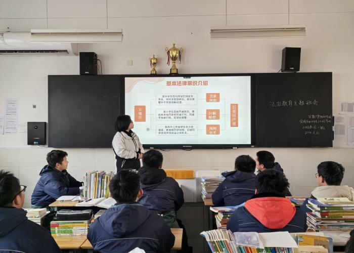 各班班主任结合本班学生实际情况,充分利用课件,视频,图片等多种资料,以多种形式来为学生诠释法律知识,向学生介绍法律的基本定义,传达知法、守法、用法、护法的重要意义。通过案例演示相结合的形式来警示大家普法的必要性和紧迫性,让学生们学会了知法、懂法、守法,知道了要树立正确、积极的人生观、价值观,不断培养自身管控能力,懂得了从身边的小事做起,用科学和法治意识武装自己,为成为新时代的好公民不断努力进取。