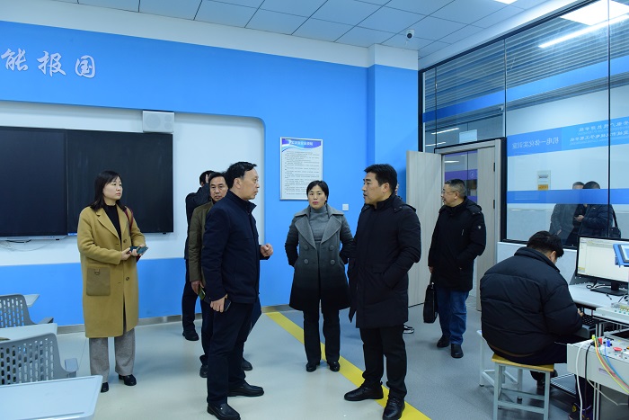 在学校党政班子的陪同下,汪赛荣一行先后实地参观了智慧党建馆和数控加工中心、机电一体化等实习实训室,并到体育馆、公共实训基地等地,了解产教融合、实训基地建设及教学情况。