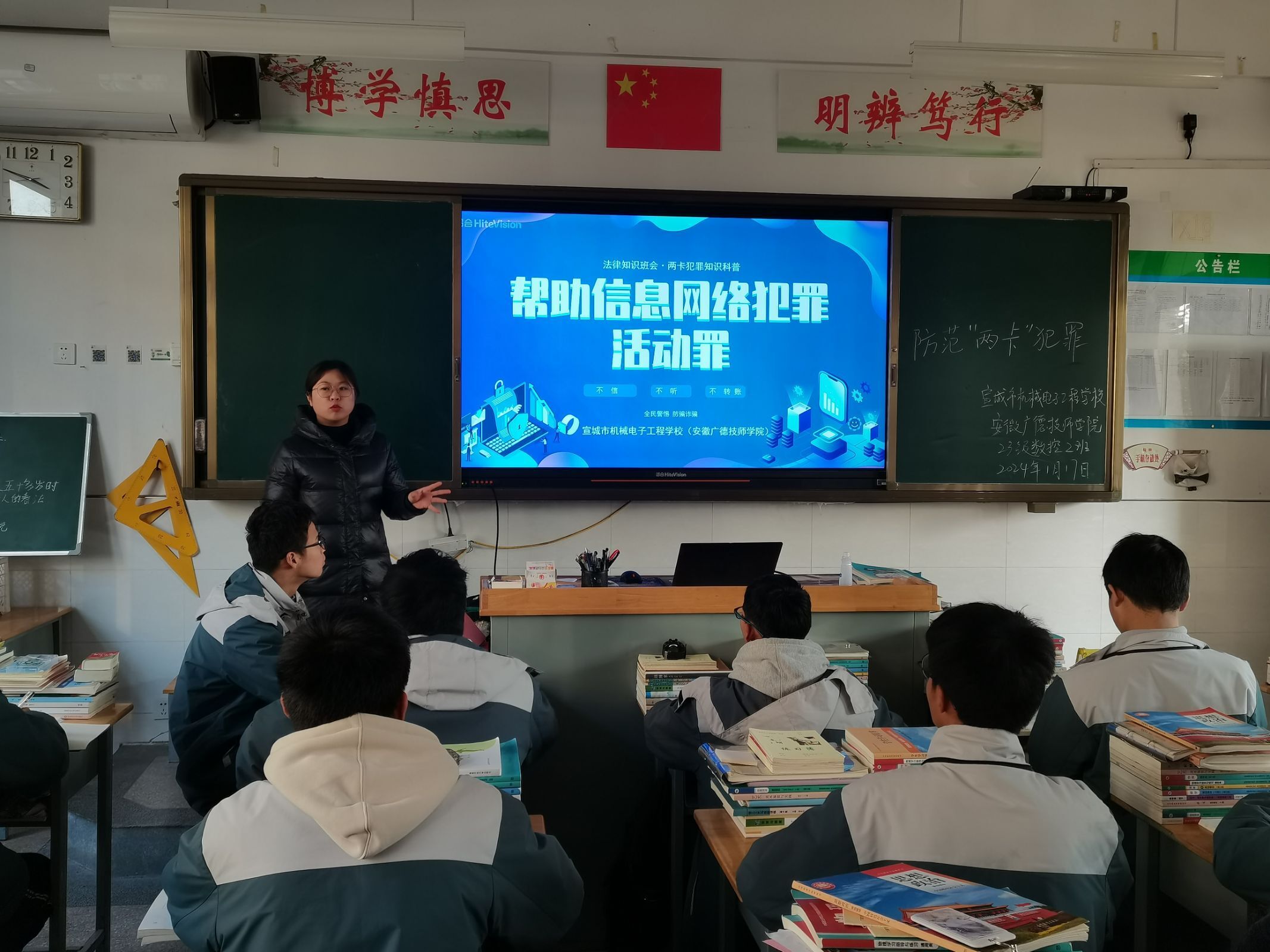 为帮助学生认识和远离“两卡”犯罪,提升学生防范网络诈骗意识,切实保障学生利益,1月17日,宣城市机械电子工程学校(安徽广德技师学院)开展防范“两卡”犯罪主题教育班会活动。