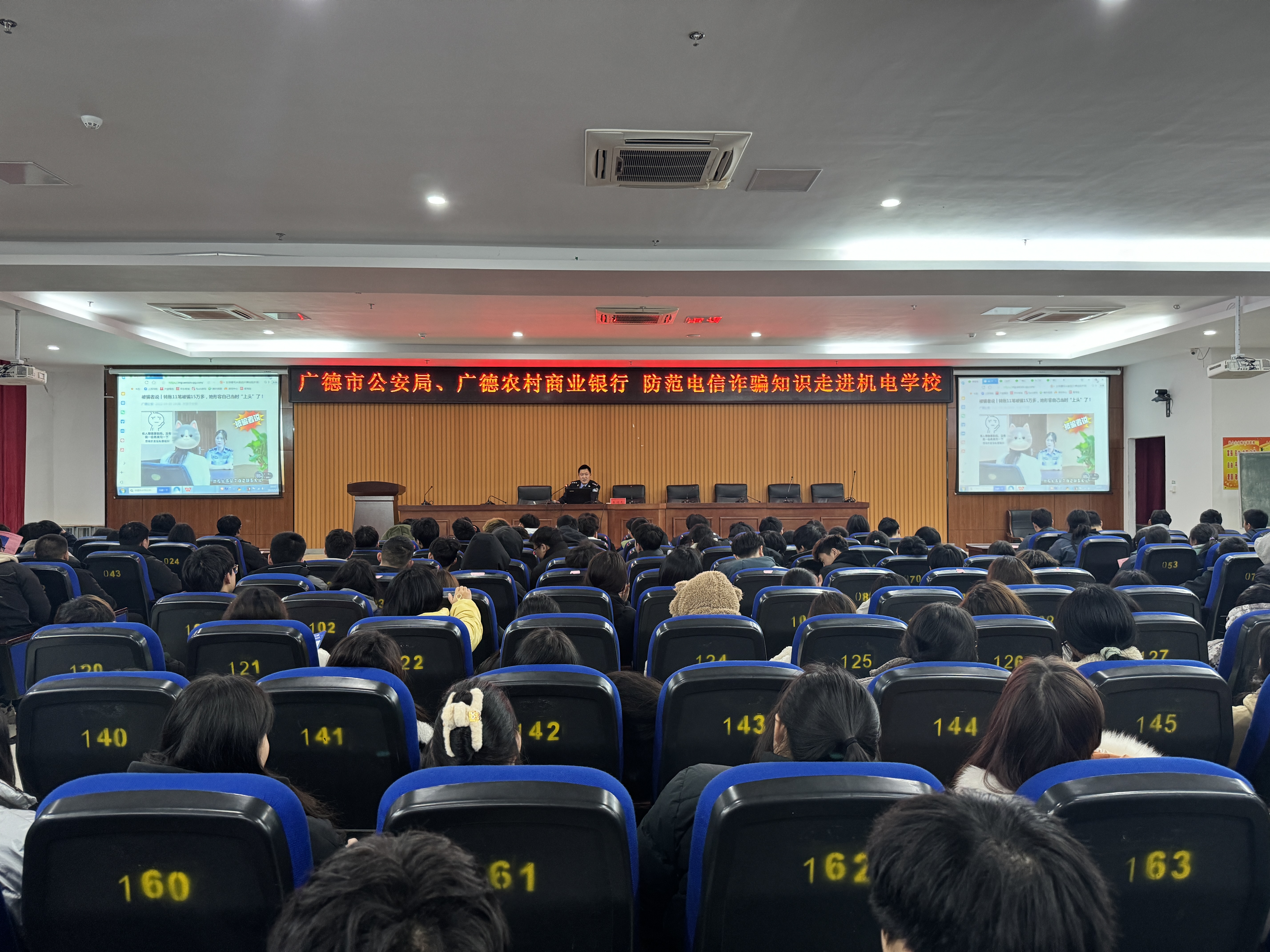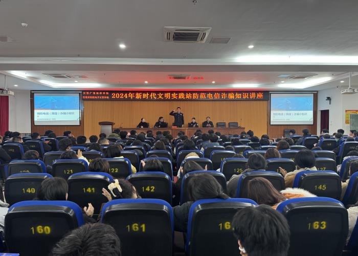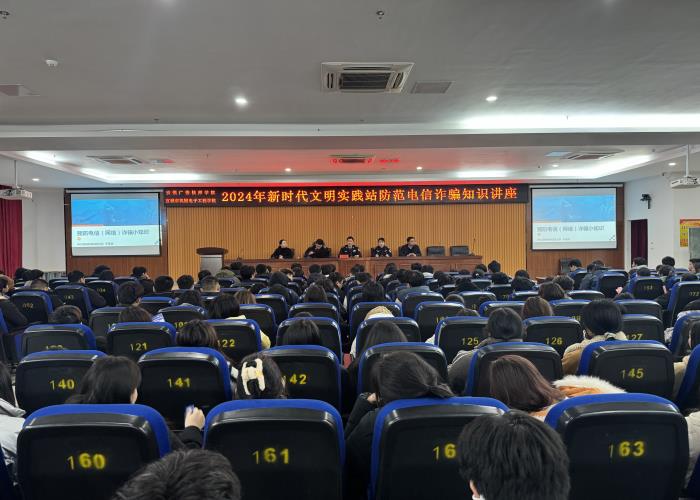 为了增强我院学生的反诈防骗意识,提高对电信网络诈骗的识别和应对能力,更有效地预防和减少被诈骗案件的发生,切实保障学生的财产安全,1月18日,安徽广德技师学院邀请广德市公安局刑事侦查大队朱顺龙、史国萍,广德农商行张经理开展2023年新时代文明实践站活动——防范电信诈骗知识讲座,学生处主任章银照、副主任李君璐参加讲座,全体2023级高级技工班学生处参加讲座,李君璐主持讲座。