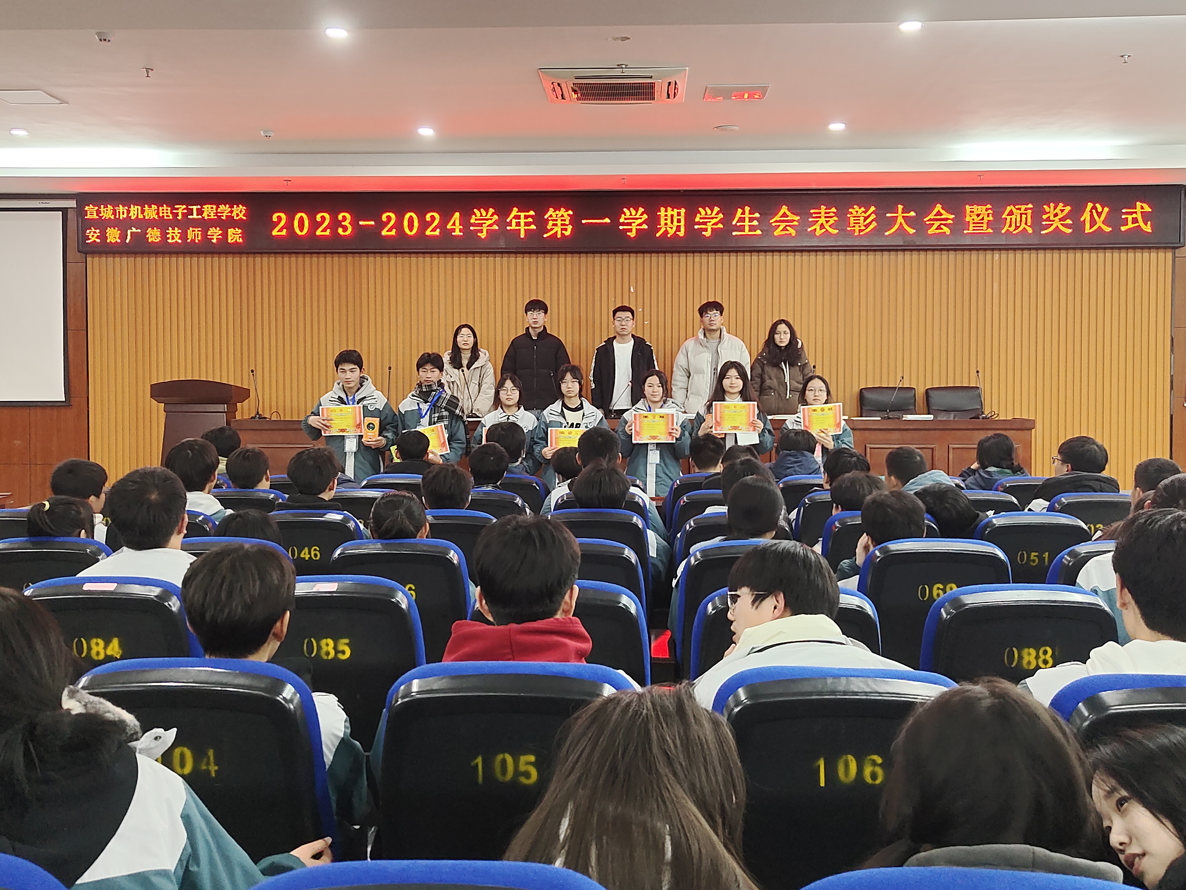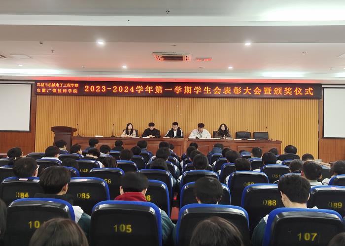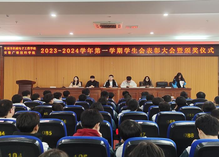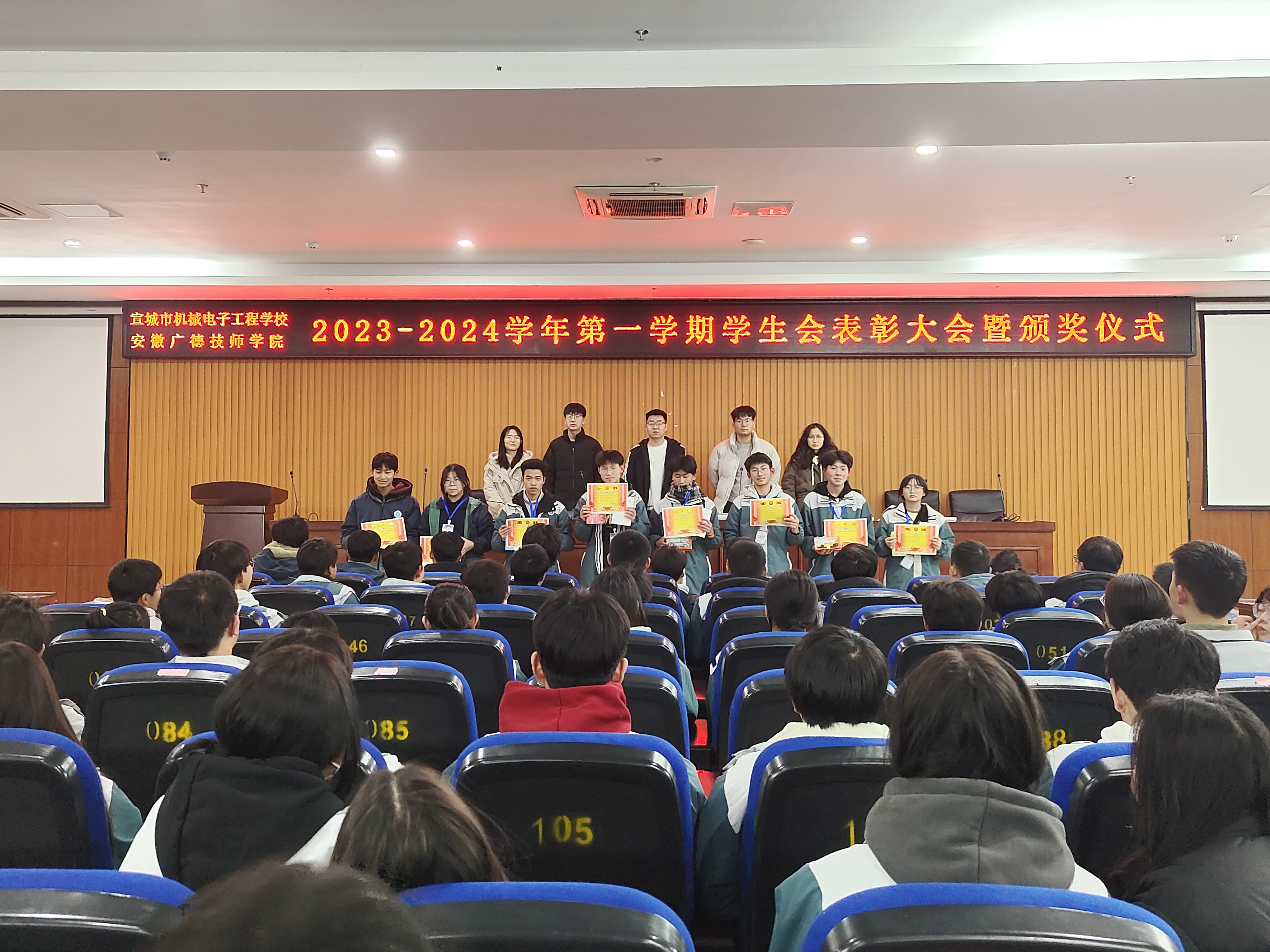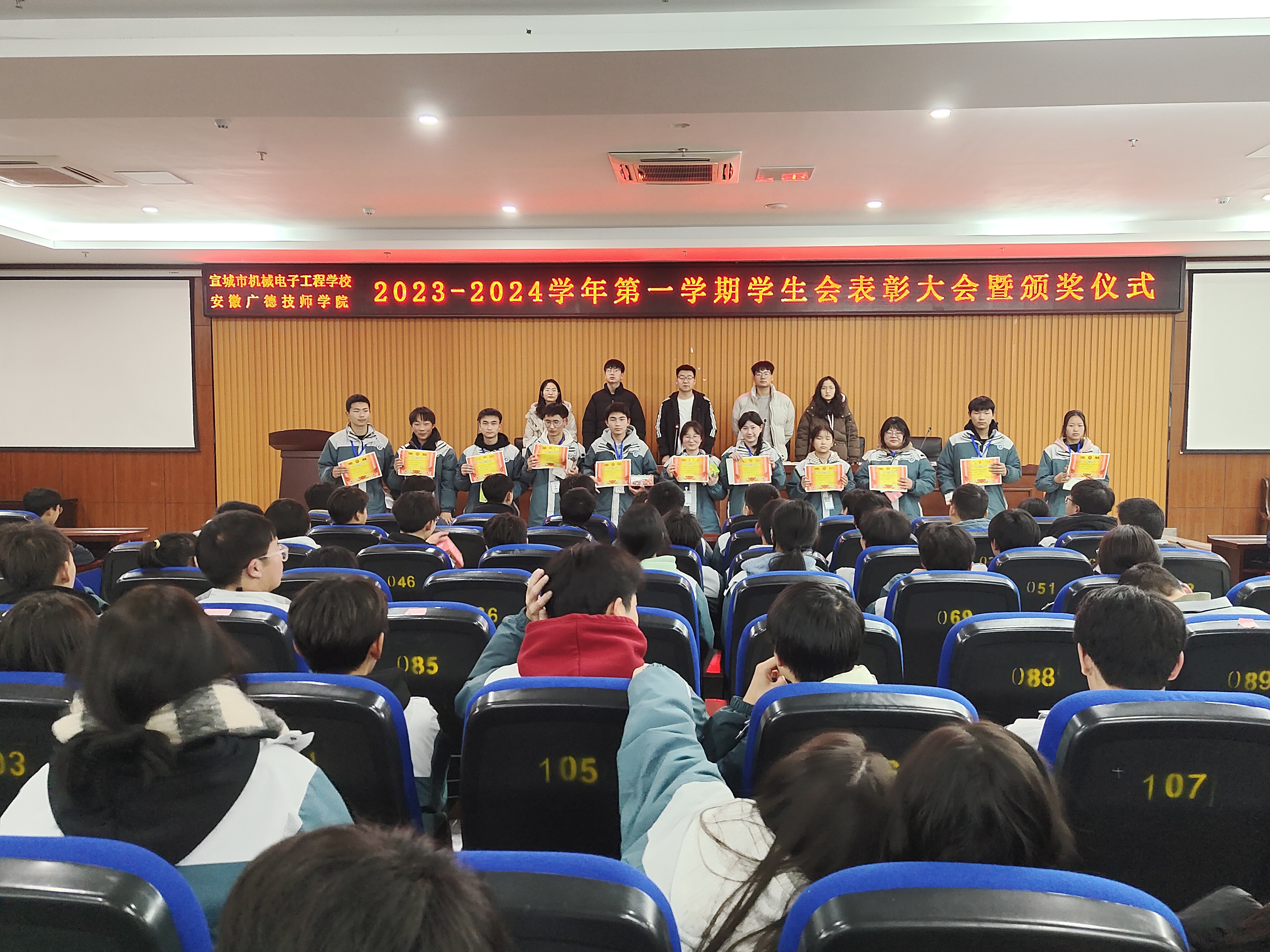 为表彰优秀,树立榜样,促进我校学生会更好地服务广大同学们,建立高效务实的学生干部队伍。1月18日,宣城市机电学校团委在图书信息中心二楼报告厅召开“2023-2024学年第一学期学生会表彰大会暨颁奖仪式”。校团委书记杨伟乾出席本次会议,校团委各委员、团委学生会各部门学生干部成员参加会议,校团委委员卞福强主持此次会议。