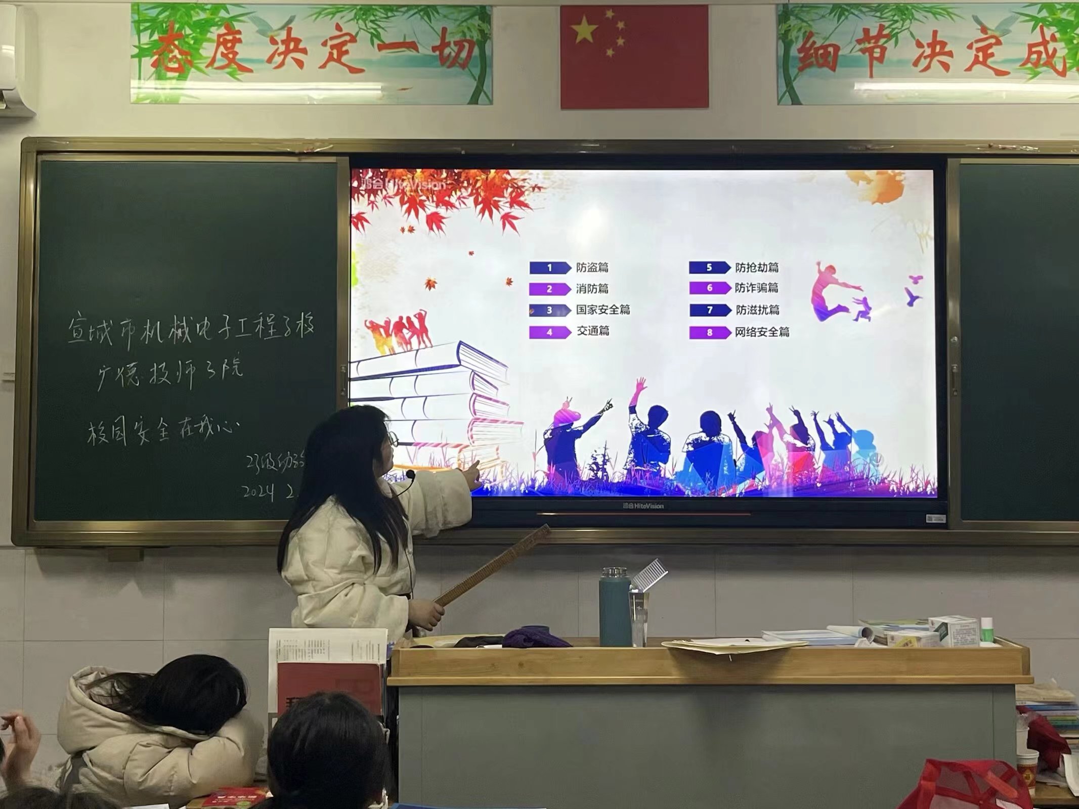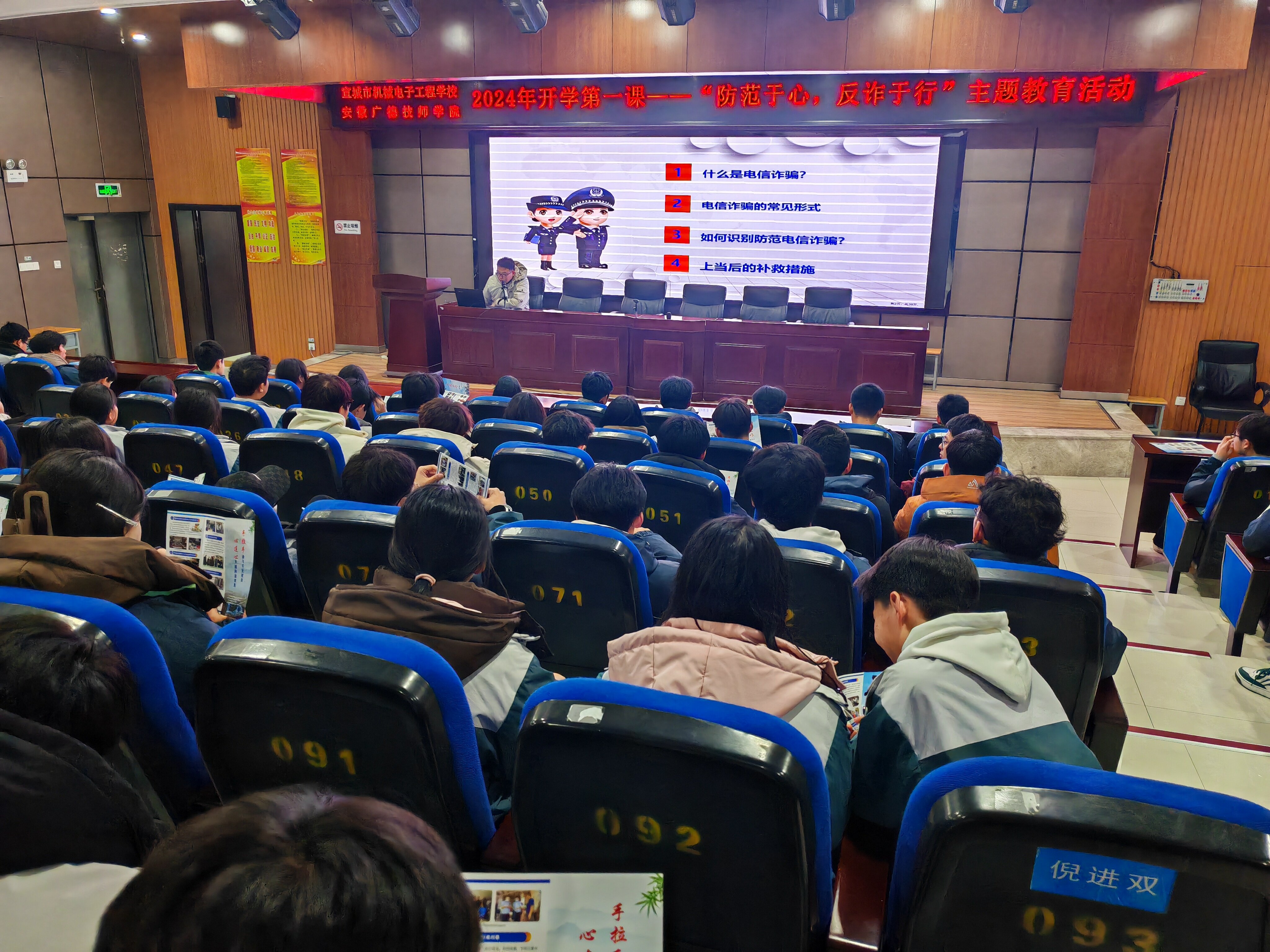 卯兔踏云去,辰龙迎新春,为了帮助学生尽快回归到日常校园学习状态,2月25日至2月28日,宣城市机械电子工程学校举行“2024年春季开学安全第一课”主题系列教育活动。将安全教育、禁毒教育、反诈教育、法治教育等纳入活动,营造了温馨和谐的开学氛围。
