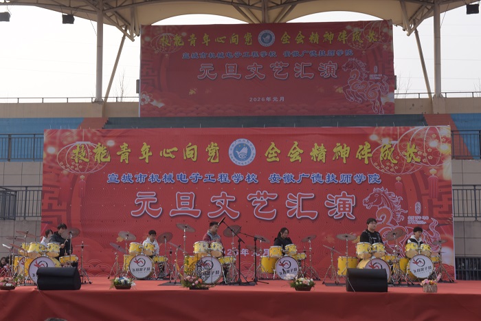 为深入学习贯彻党的二十届四中全会精神,以高质量校园文化建设落实立德树人根本任务,喜迎2026年元旦,12月30日,宣城市机械电子工程学校(安徽广德技师学院)举行“技能青年心向党,全会精神伴成长”主题元旦文艺汇演。学校党政领导班子、全体师生欢聚一堂,在洋溢着青春热情与文化自信的氛围中,共同迎接新年的到来。