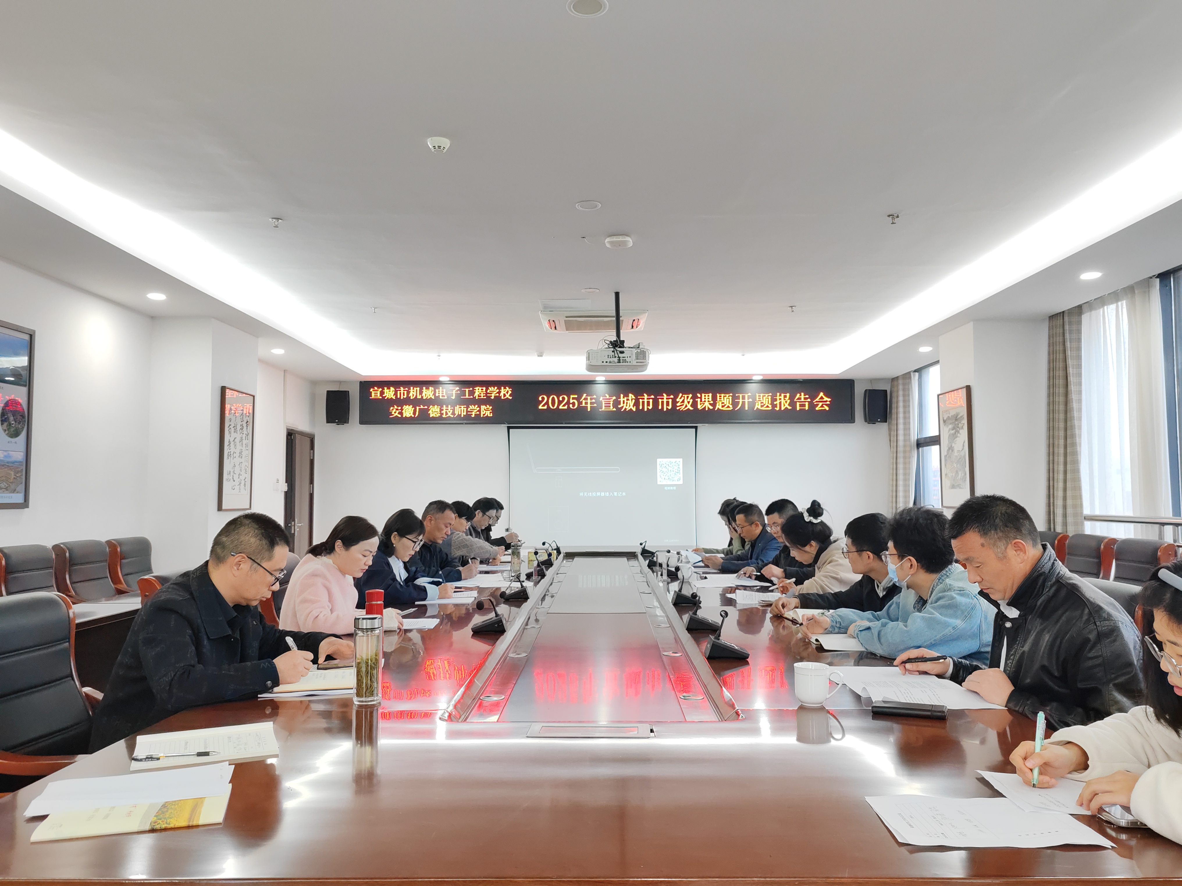 为切实做好2024、2025年度宣城市级课题研究工作,提高课题研究质量。2025年10月30日下午,我校2025年度宣城市级课题开题报告会暨2024年度宣城市级课题中期报告会在图书信息中心5楼会议室隆重召开。本次参会人员包括广德市教研室主任陈忠良,广德市职教教研员陈仁海,学校分管校长胡斌,学校教师发展中心主任何丽娜、副主任夏赢,各课题组主持人以及成员等,本次会议共话课题研究进展,共商深化研究之策。会议由教师发展中心副主任夏赢主持。