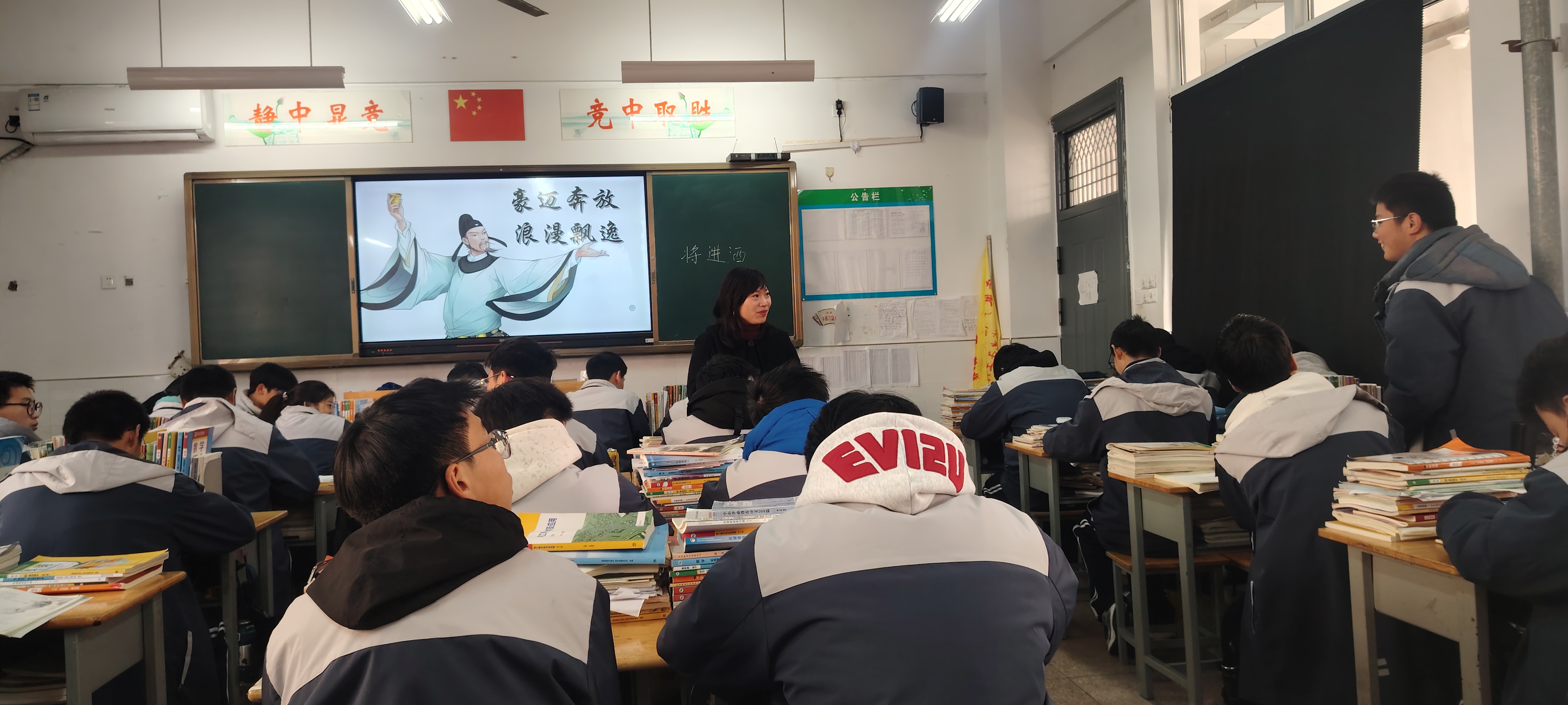 为深入推进语文教学改革,积极探索信息技术与古典诗词教学的深度融合,宣城机电工程学校语文教研组于12月25日下午第二节开展了一节别开生面的校内公开课。柳静老师以李白名篇《将进酒》为内容,面向24级机电1班学生,呈现了一堂富有激情、创意与技术融合的语文课。