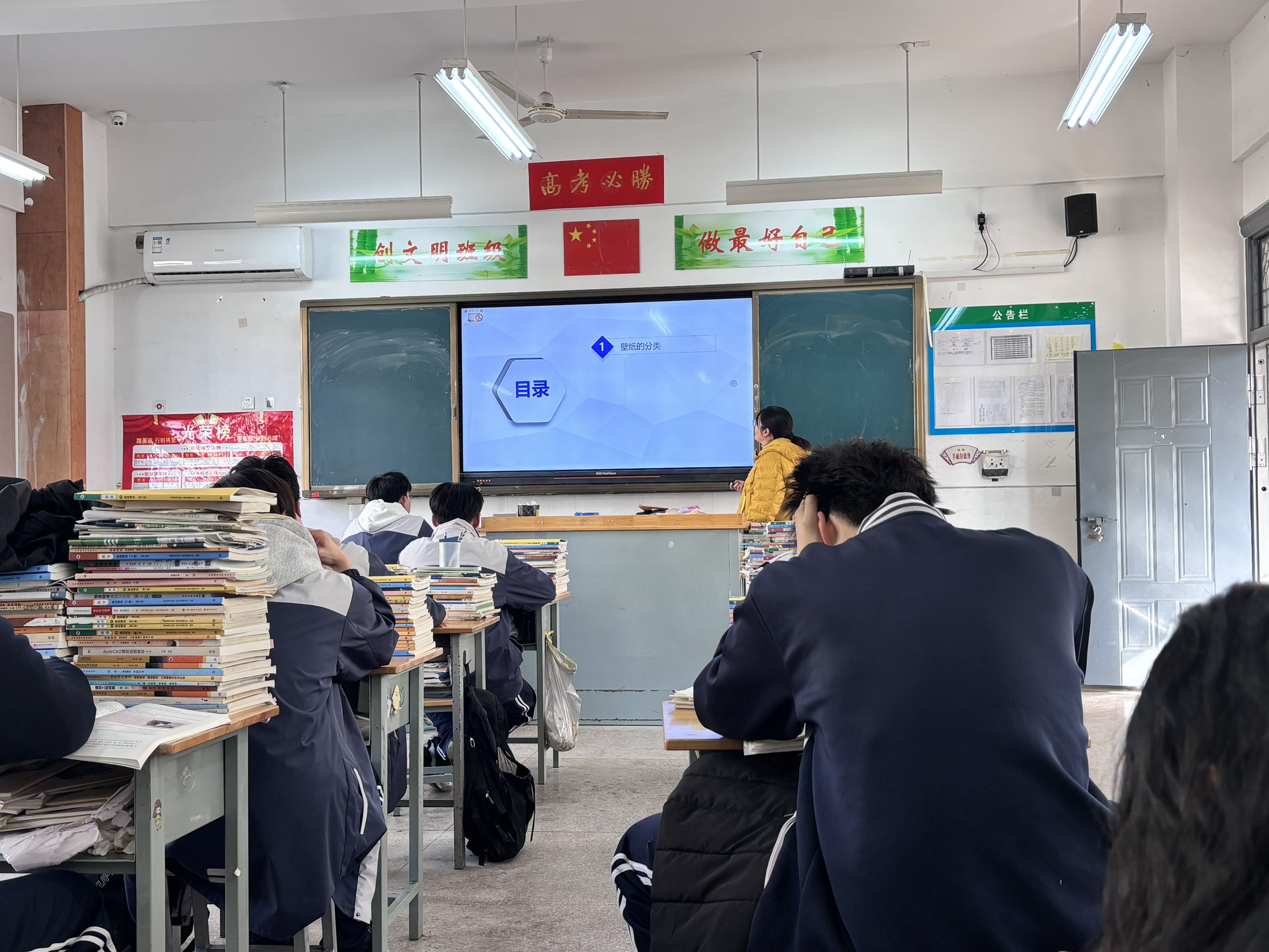 课堂伊始,李琴老师通过 PPT 展示大量壁纸装饰案例,从温馨家居到商业空间,让学生直观感受壁纸墙饰面的装饰美感。随后,她以壁纸的起源与发展为切入点,介绍了现代壁纸 “色彩多样、施工便捷、安全环保” 的核心优势,自然引出本节课的学习主题,成功激发了学生的学习兴趣。