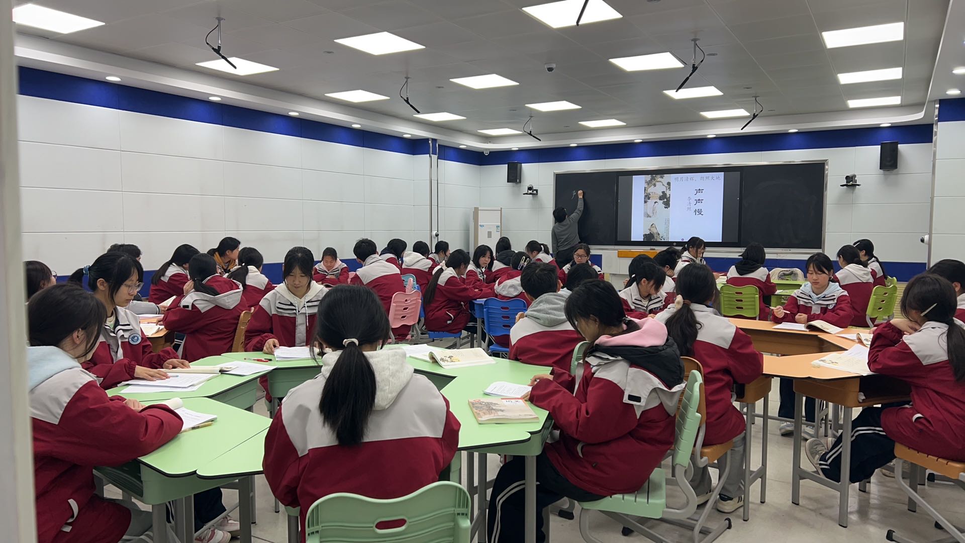 活动严格遵循LICC课堂观察范式流程推进。3月25日下午,仇敏将教学设计发至工作群并召开课前会议,工作室成员根据各自研究兴趣分别选择了观察点。3月26日上午第一节,仇敏在25机护理1班执教《声声慢》,针对部分成员因有课不便现场听课的情况,工作室根据成员选择的观察点架设两台摄像机完成课堂全程录制,确保全体成员能够参与课堂观察。当日下午第三节课召开课后会议,仇敏首先进行教学反思,随后成员们依据各自观察点踊跃发言,交流观察结果,开展深入评议。