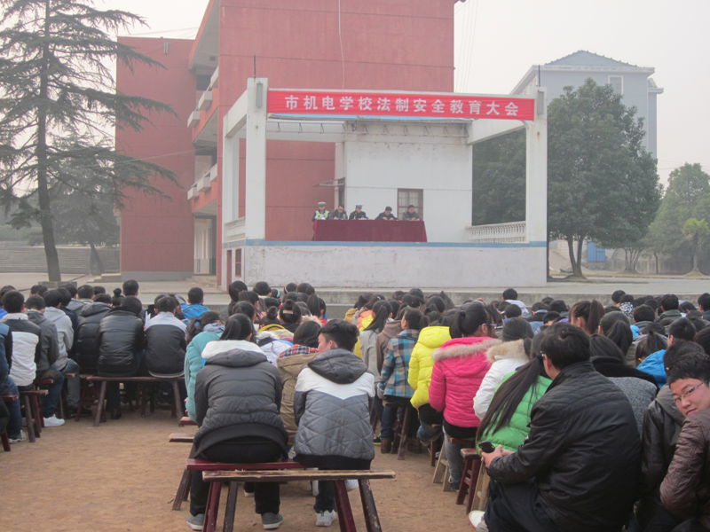 12月4日下午,市机电学校在校运动场举行了一场别开生面的安全法制教育报告会,报告会邀请了县交警二中队的阳良东指导员为同学们做了交通安全讲座;县司法局法律援助中心向世敏律师为同学们做了法律知识讲座。