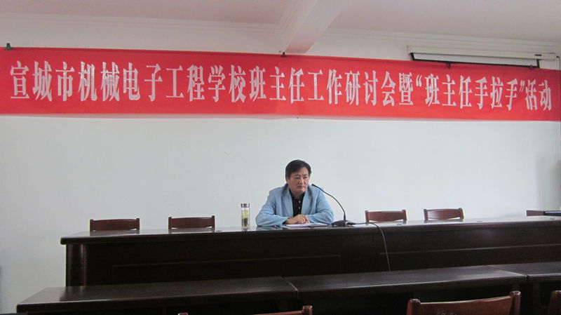 市机电学校历年来十分重视班主任工作经验交流,打造一支过硬的班主任队伍。10月25日下午,在校行政楼二楼,召开了班主任工作经验交流会暨班主任手拉手活动,高三年级组组长梅德权就班主任工作做经验交流。他首先深入分析了我校学生的思想状况、素质水平及家庭状况,然后就班主任工作提出几点经验:一是要有一个良好的精神状态,二要建立一支得力的班干队伍,三要帮助学生树立人生目标,四要讲究工作方法。