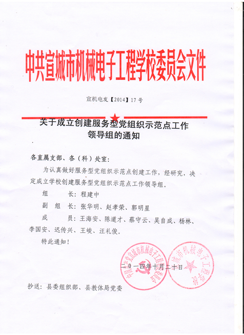 宣城市机械电子工程学校创建服务型党组织工作实施意见