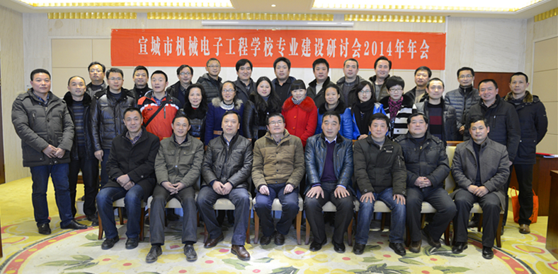 为更好的加强专业建设,更科学、合理地制定各专业人才培养方案, 12月26日下午,宣城市机械电子工程学校召开专业建设研究会2014年年会。宣城职业技术学院、安徽材料工程学校、宣城工业学校、宣城信息工程学校、广德易家网有限公司、安徽荣华机械制造有限公司等院校、行业企业的30位代表参加会议。宣城市教体局职教科科长高利兵、广德县教体局党委委员、办公室主任陈传胜到会指导。