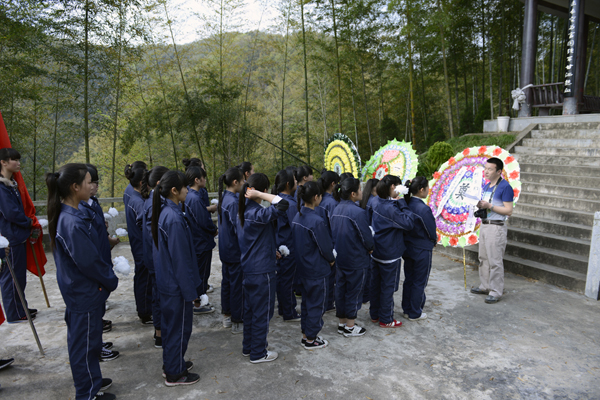 2015年4月1日上午8点,市机电学校14春社会艺术专业学生师生在党支部书记王海安、第三党小组组长、班主任简光军带领下来到“6·3”空难烈士陵园进行祭扫活动。