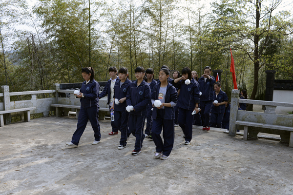 随后,同学们迈着缓缓的步伐,绕烈士墓碑一周,瞻仰烈士遗容,并向烈士敬献了自己亲手制作的小百花。