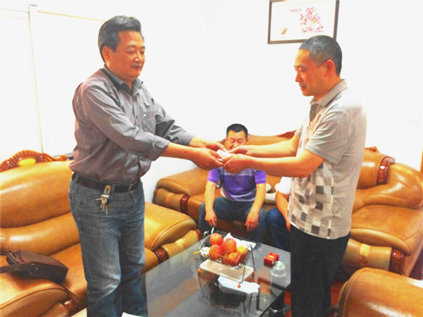 在走访慰问中,赵孝荣详细询问了肖行春老师的身体状况,上班期间的困难,并代表学校向其赠送了慰问金。
