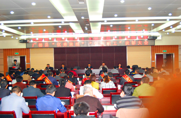 “五·一”国际劳动节来临之际,广德县总工会、人社局、文明办召开表彰大会,对评选出的20个“优秀班组”和50名“优秀职工”进行表彰。县委常委、组织部长王爱庆、人大副主任胡建平、副县长许笑慧、政协副主席马群等县领导出席大会。