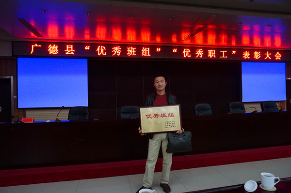 经过申报、教体系统工会审核推荐、评委会评审、公示等程序,广德中职语文及专业课名师王海安工作室获得广德县“优秀班组”荣誉称号,工作室代表简光军参加了表彰大会并接受了领导的颁奖。