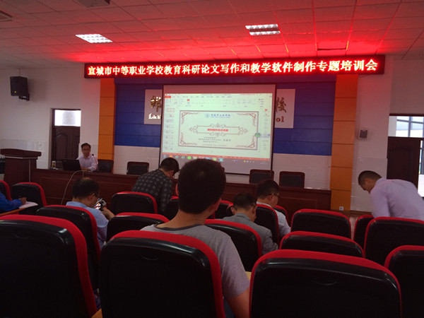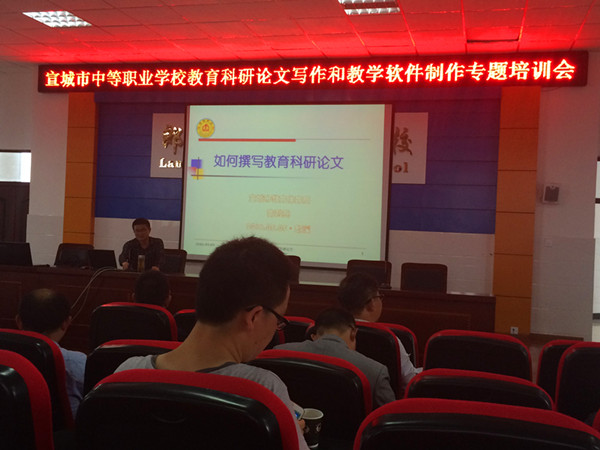 为提高广大教师教育科研论文写作水平和教学软件制作水平,促进教师教育科研工作能力的提升,5月5日下午,由宣城市教育学会职业教育专业委员会主办、市职业教育教研中心组信息技术组、范建平信息技术(动漫)名师工作室协办的全市中等职业学校教师教育科研论文写作和教学软件制作培训会在郎溪县中等专业学校举行,在学校科研处主任陈远清带领下,王海安、简光军、汪礼俊、章银照等老师参加了培训会。