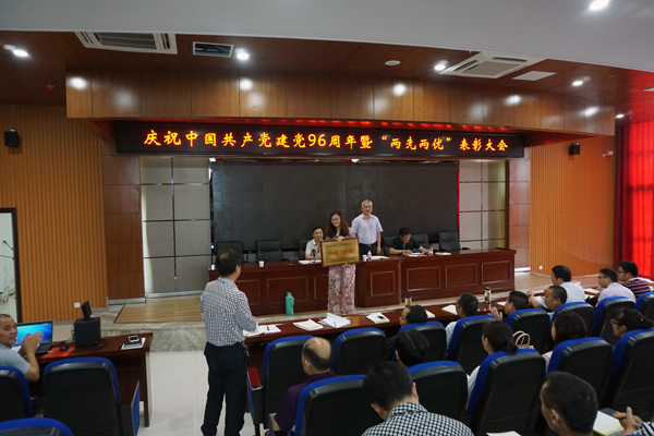 党委委员、副校长陈传胜宣读了学校党委《关于表彰2016年度“先进党支部”“先进党小组长”“优秀党务工作者”“优秀共产党”的通知》。程建中、赵孝荣、陈传胜分别为获得“先进党支部”“先进党小组长”“优秀党务工作者”“优秀共产党”的代表和个人颁发了奖牌、证书和奖金。