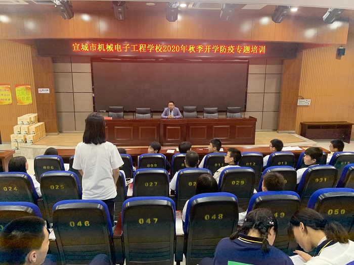为做好校园疫情防控工作,9月23日晚,宣城市机电学校召开学生干部防疫知识培训会。培训会由该校学生科负责人章银照主讲。
