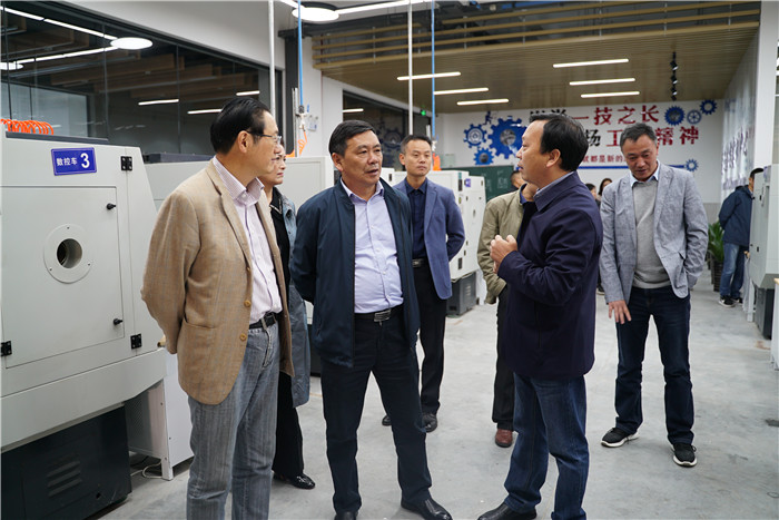宦朝东一行在校领导陈传胜、胡斌等陪同下,参观了校园,实地查看了新建实训基地、数控加工中心等实训场地。他们边参观,边听取了陈传胜对学校办学基本情况、职业教育产教融合的一些典型做法等介绍。宦朝东对学校办学取得的成绩给予肯定,并对学校的发展提出了一些宝贵的意见和建议。(黄成园)