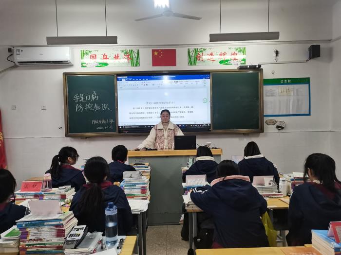 班会上,各班班主任通过讲理论、举事例、看视频等形式,深入浅出的讲授了手足口病的病原体特点、传播途径、临床表现及预防措施等内容。