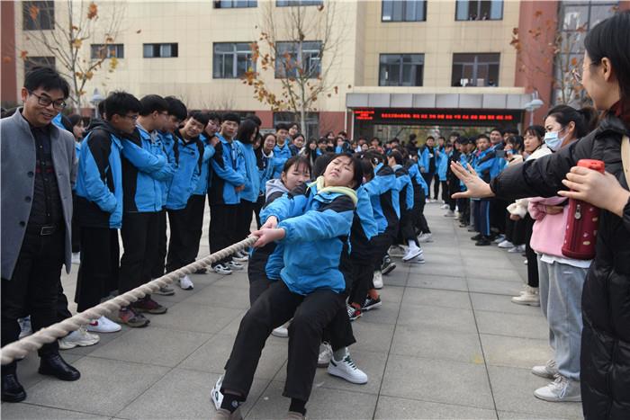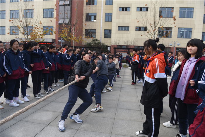16日下午,伴随着加油呐喊声,拔河比赛拉开了我校2020年体艺节帷幕。本届拔河比赛先进行系部内年级小组赛,选出优胜队参加系部间的决赛。当比赛的哨声一响,队员们口中一起高呼“一二加油,一二加油!”,双手紧握长绳,憋足了劲,拼命往后拉,广大师生在旁边助阵加油!师生自发的组成了啦啦队为他们加油。呐喊声此起彼伏,飘荡在整个小广场上空。