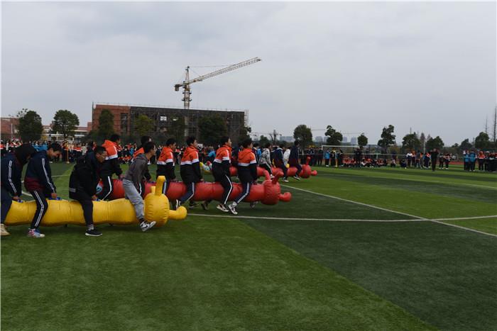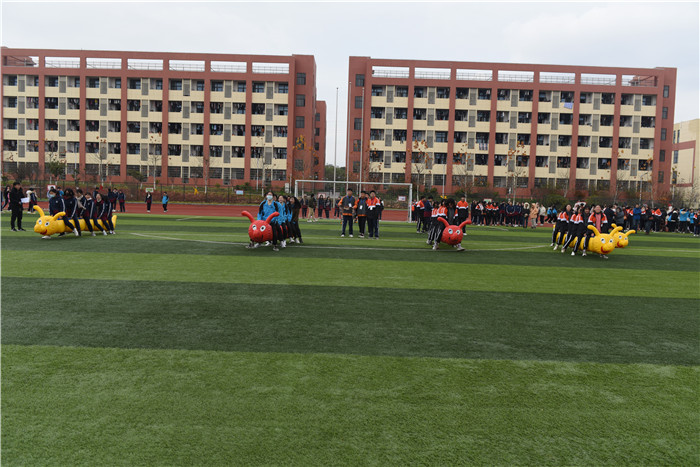 疯狂毛毛虫在校操场上同时进行。与传统运动项目相比,趣味运动项目将竞技与娱乐相结合,着重鼓励师生团结协作,充分发扬集体主义精神。比赛过程中,各团队队员以胜不骄、败不馁的精神,个个精神饱满、斗志昂扬,一场场的比赛,挥洒着同学们的汗水。