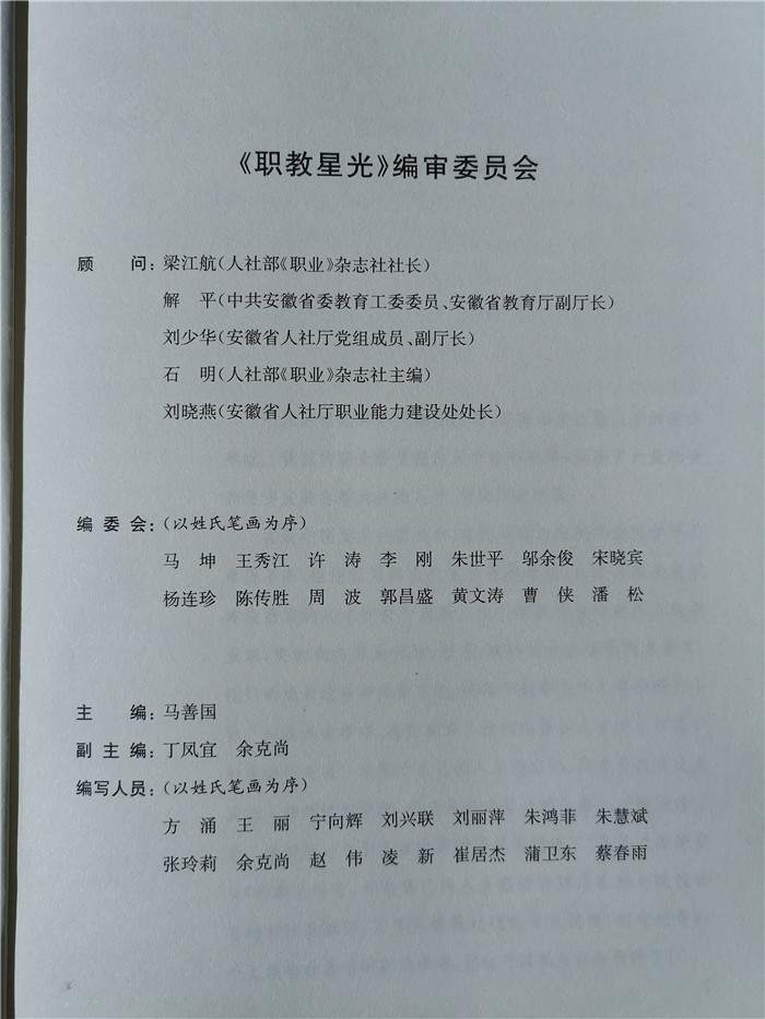 《职教星光》系列丛书收录我省职业院校(技工院校)优秀毕业生在职业生涯中扎实苦干、奋力拼搏的先进事迹,为职业学校(技工院校)学生树立了身边的榜样,对他们立志求学,实现人生梦想起到较好的激励作用。(宁向辉)