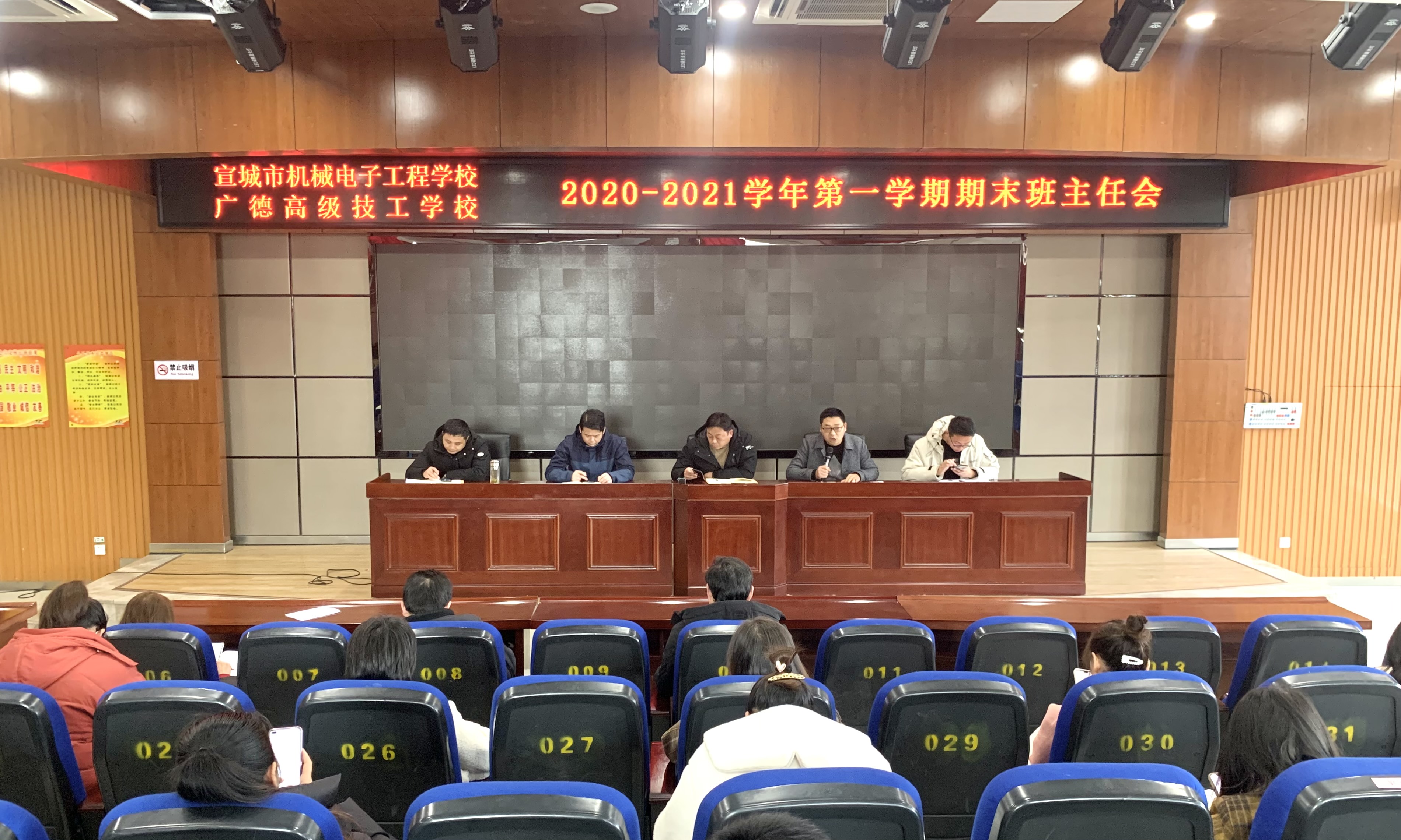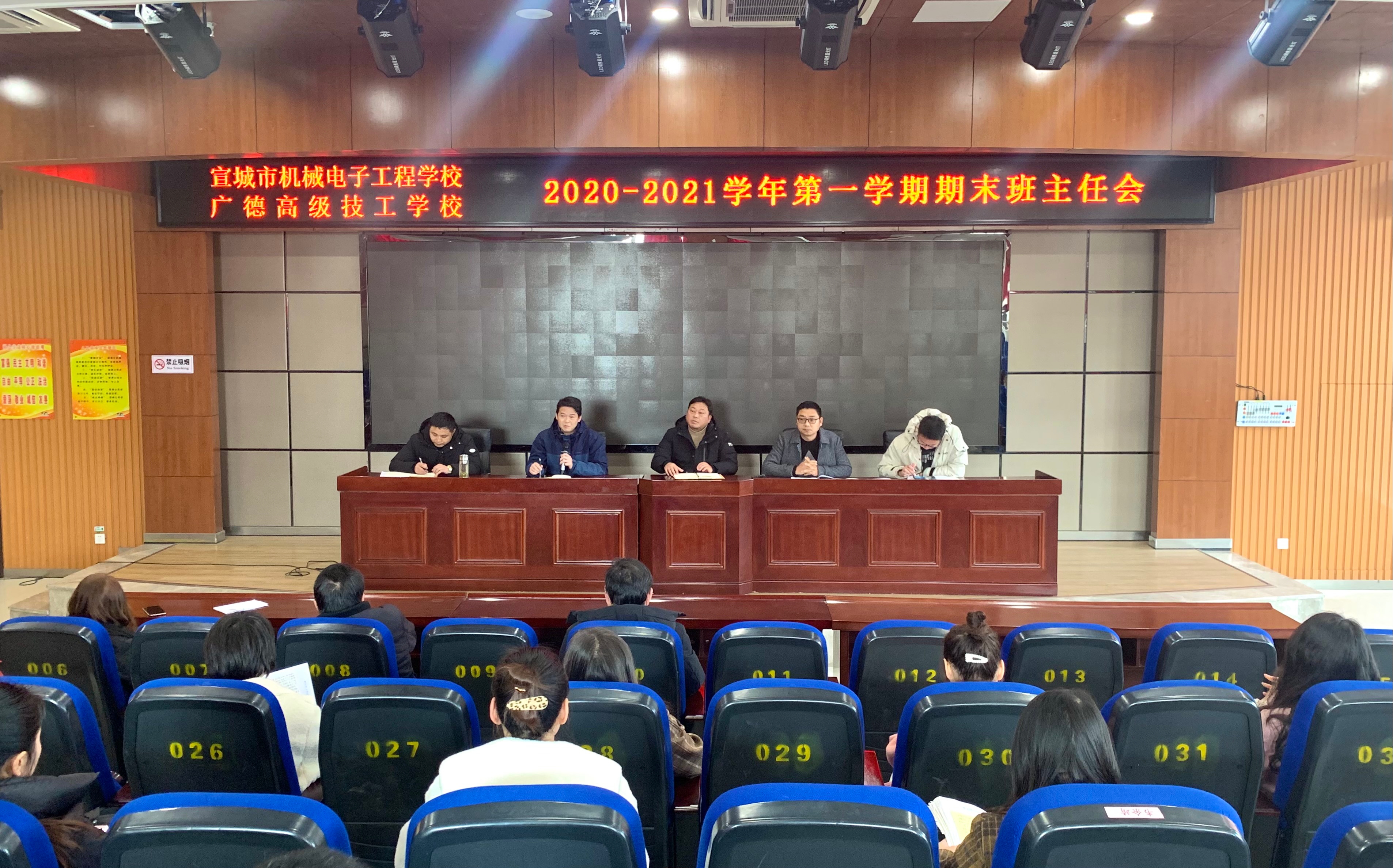 1月21日,宣城市机械电子工程学校在图书信息中心一楼召开2020-2021学年第一学期期末班主任工作会。会议由学生科副科长章银照主持,副校长杨林、总务处副主任韦余靖、学生科副主任钟勇、团委书记李君璐,全体班主任教师参加会议。